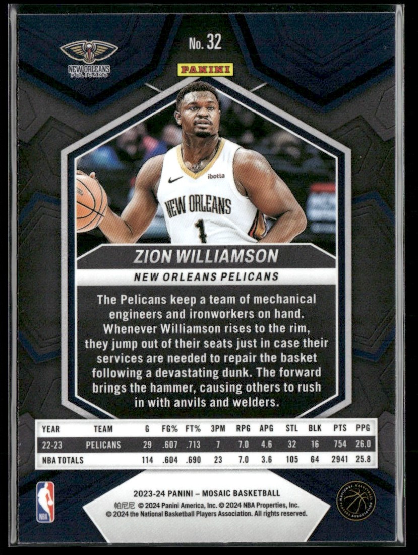 | 2023-24 PANINI MOSAIC ZION WILLIAMSON NEW ORLEANS PELICANS #32 |