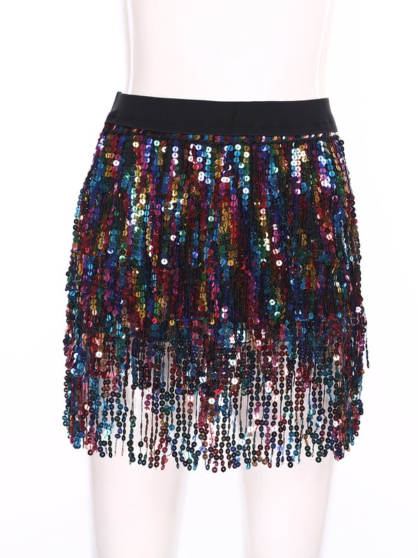 Women Sequin Tassel Swing Skirt Ballroom Dance Skirt Tribal Belly Dance Costume