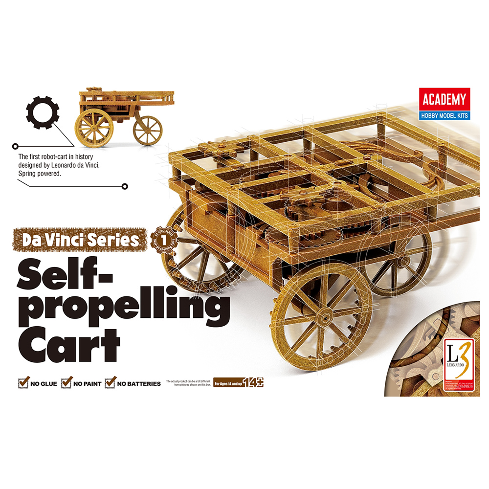 Build one of Leonardo da Vinci's most fascinating mechanical inventions with the Academy Da Vinci Series Self-Propelling Cart. This clever spring-powered design is considered one of the earliest known concepts for a self-moving vehicle, making it both historically significant and fun to construct.
