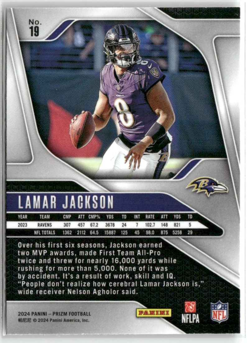| 2024 PANINI PRIZM LAMAR JACKSON BALTIMORE RAVENS #19 |