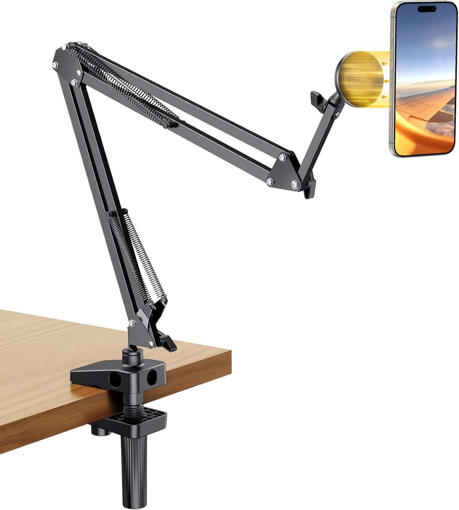 It is specifically engineered for devices 12mm and thicker and magnetic accessories. Unlike traditional gooseneck clamp mounts, it eliminates cumbersome setup, allowing for effortless placement and removal of your phone.