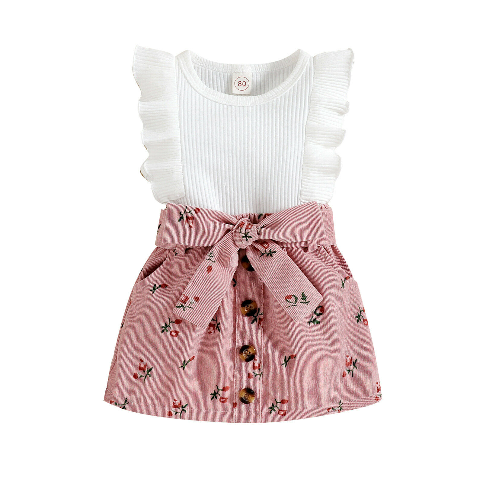 Toddler Girls Outfits Clothes Casual Party T-shirt Tops+Skirts Shorts Dress Set