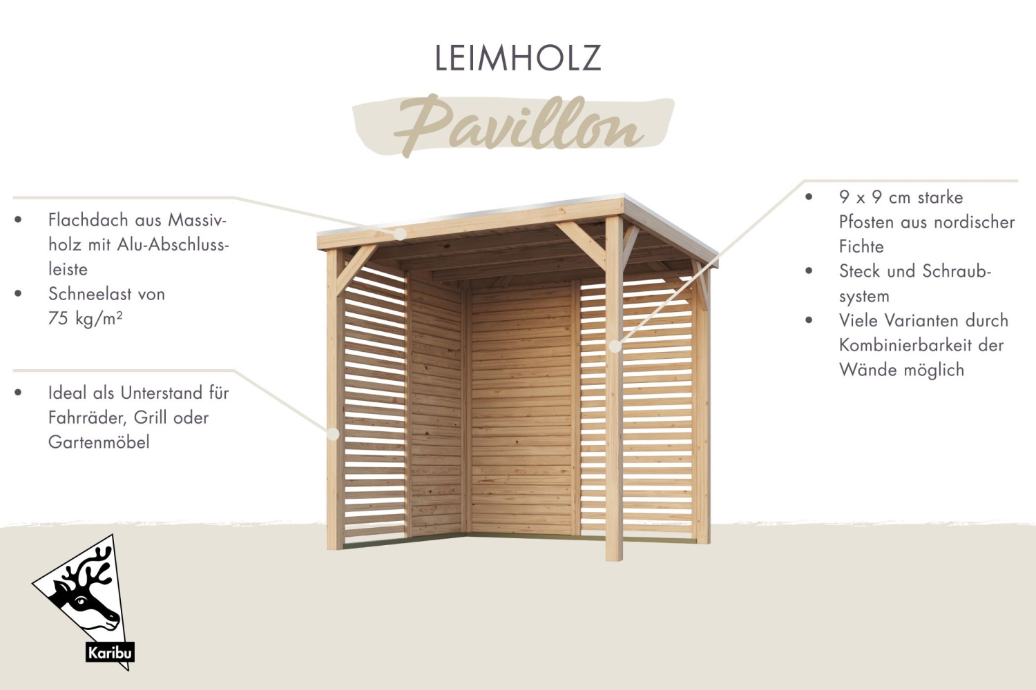 Gestalten Sie Ihren Pavillon so individuell wie Ihre Vorstellungen: Die Kombinierbarkeit der Wände eröffnet Ihnen viele Varianten, um Ihren persönlichen Traumplatz zu erschaffen.
