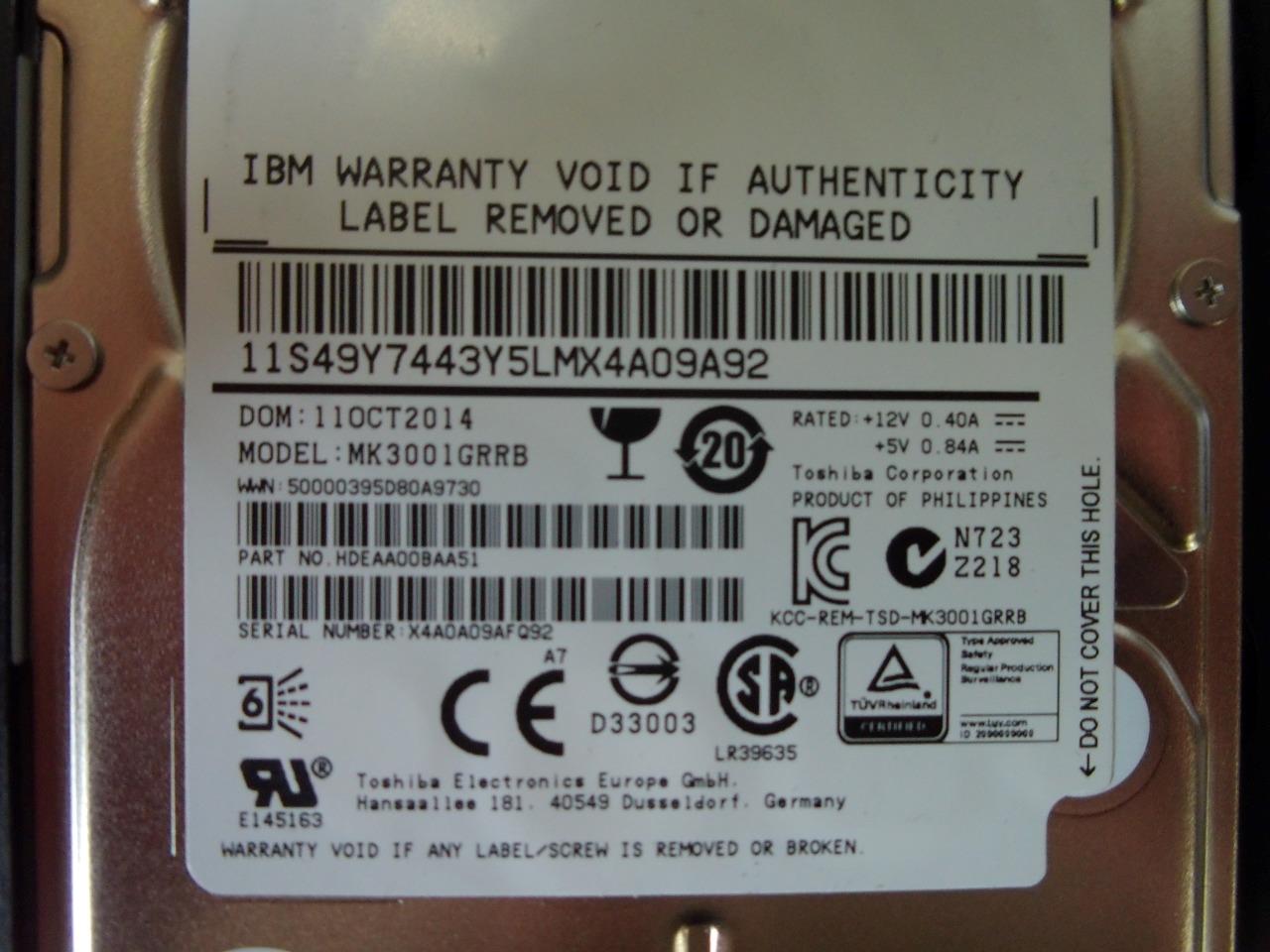 Lot Of 3* IBM MK3001GRRB 300GB 15K RPM 6Gb/s 2.5" SAS HDD Hard Drive (J576)