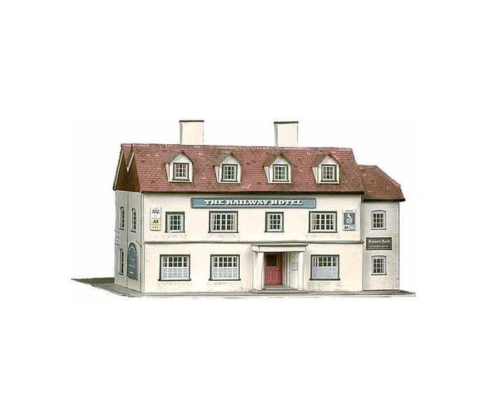A fine design of a rural and regional hotel, commonly found near a town centre or close to a country station. This kit includes instructions and will need gluing to complete.