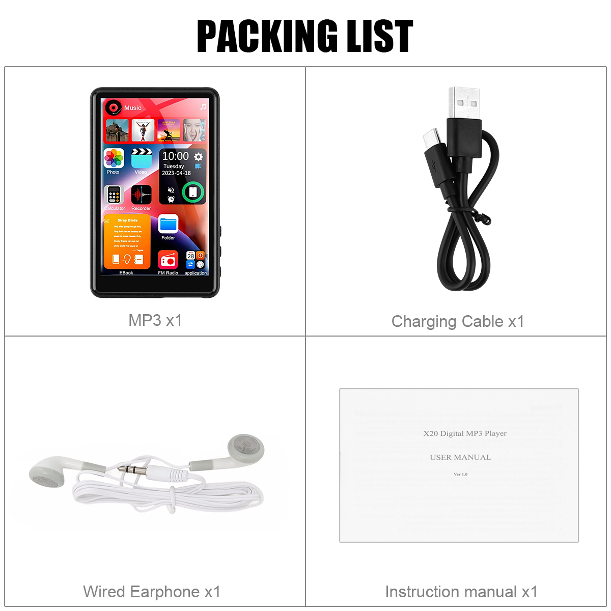 β 4.0" IPS HD Full Touch Display | β Bluetooth 5.0 Wireless Connectivity | β 16GB Built-In Memory | β Up to 256GB TF Card Expandable | β 1080P Full-Format Video Playback | β Studio-Grade HiFi Lossless Audio | β 1000mAh Battery with Type-C Fast Charging | β All-In-One Multifunctional Design