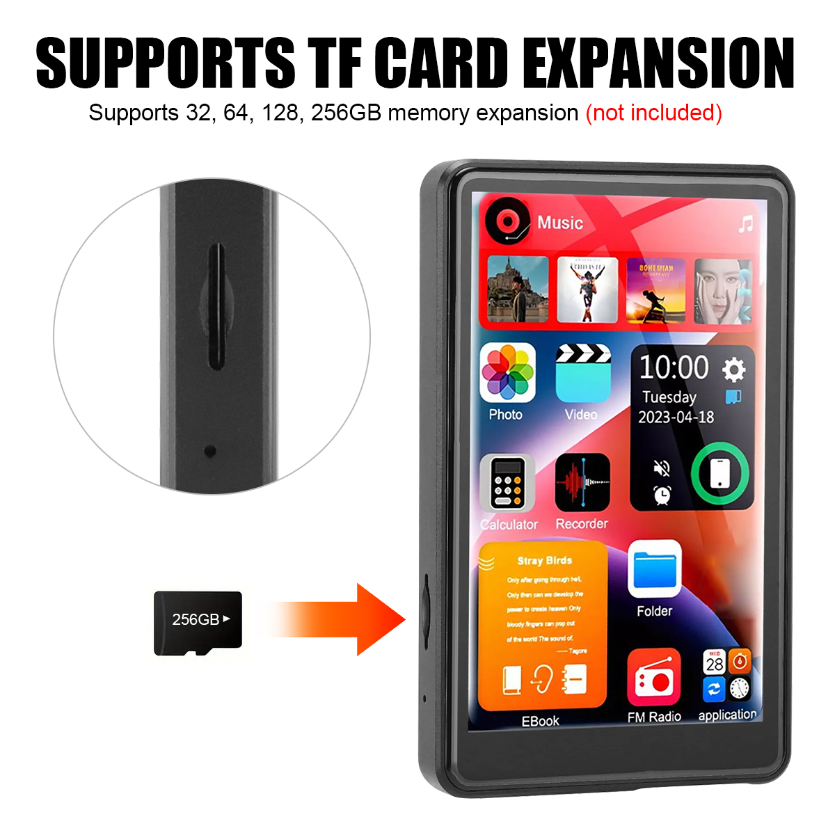 With 16GB of built-in memory, you can store thousands of songs, hours of video, and hundreds of e-books right out of the box. It also supports TF card expansion up to 256GB (card not included), giving you virtually unlimited storage for all your media files.