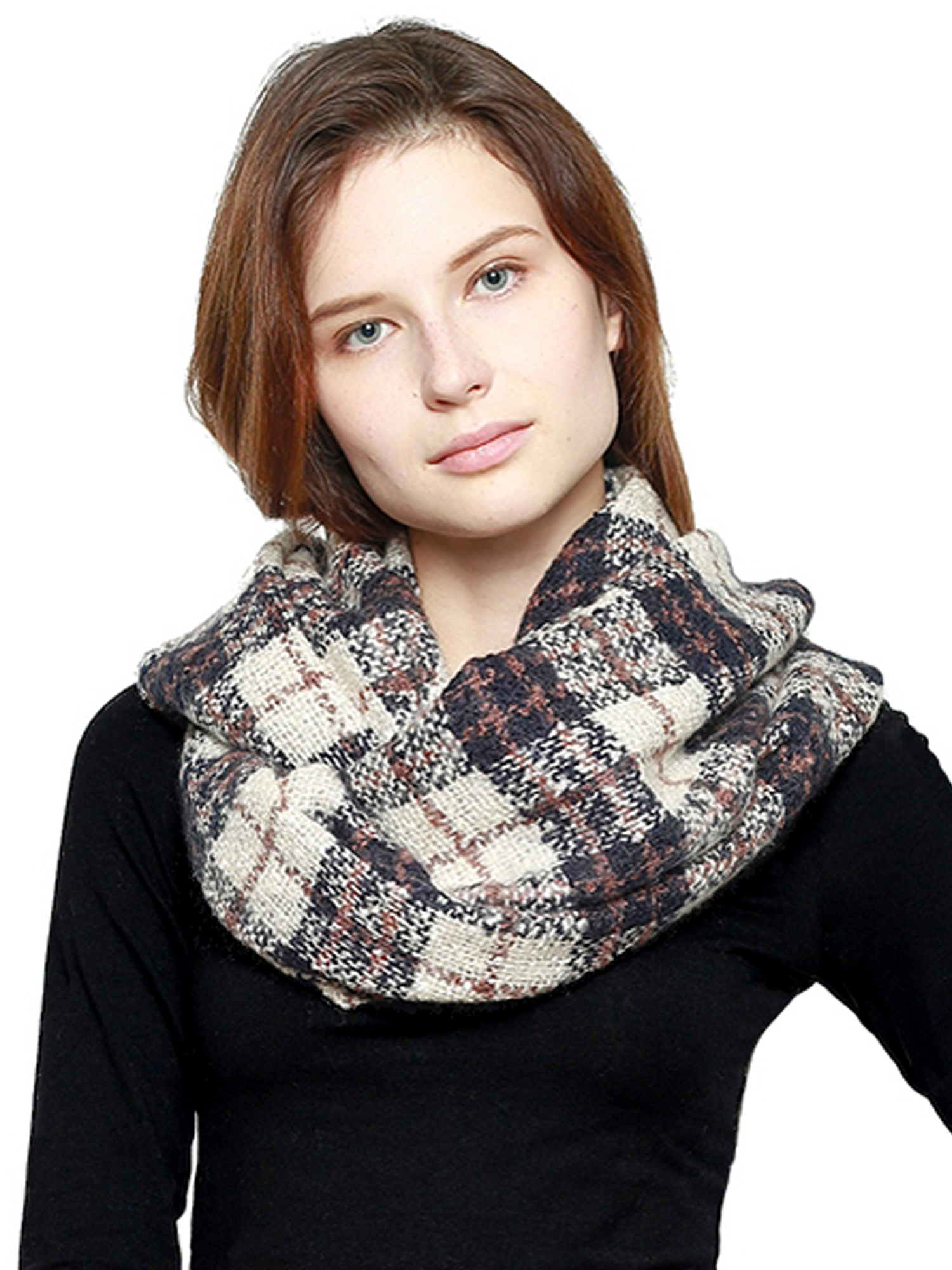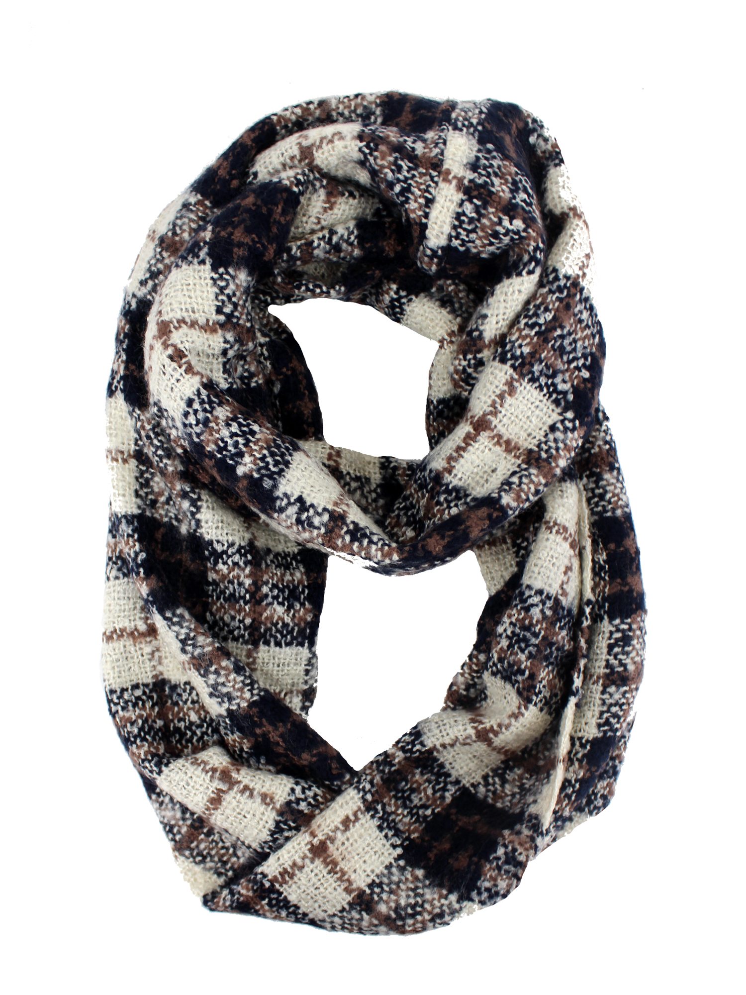 Stay warm and cozy with this plaid infinity scarf.