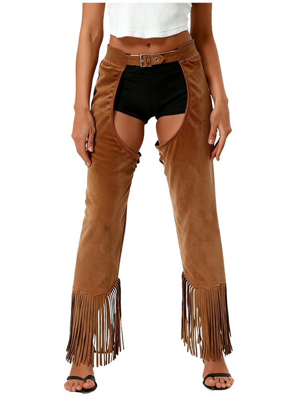Womens Cowboy Chaps Open Bottoms Adjustable Pants Themed Party Trousers Disco