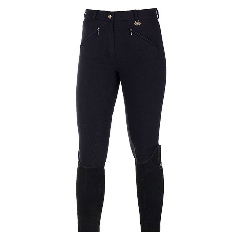 Ride with confidence and security in the Horze Active Full Seat Riding Breeches. Crafted from a comfortable, stretchy knitted fabric, these breeches offer excellent flexibility and a secure fit for daily schooling. The main feature is the contrasting Full Seat panel, which provides superior grip and stability in the saddle, helping to maintain proper position. Styled with a flattering mid-rise waist and a practical zippered pocket, these breeches are the ultimate blend of high-performance function and modern equestrian design.