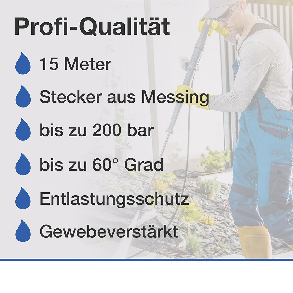【Hohe Qualität】Der Hochdruckreinigerschlauch ist hochfestes Drahtgeflecht, Innenrohr ist mit synthetischem Gummi verstärkt, und professionelle Messing-Schnellkupplungen an beiden Enden. Lange Lebensdauer und Sicherheit, es ist geeignet für die Haushaltsreinigung & kommerzielle Nutzung.