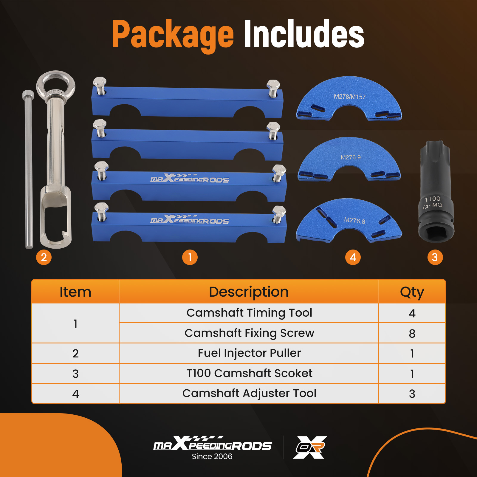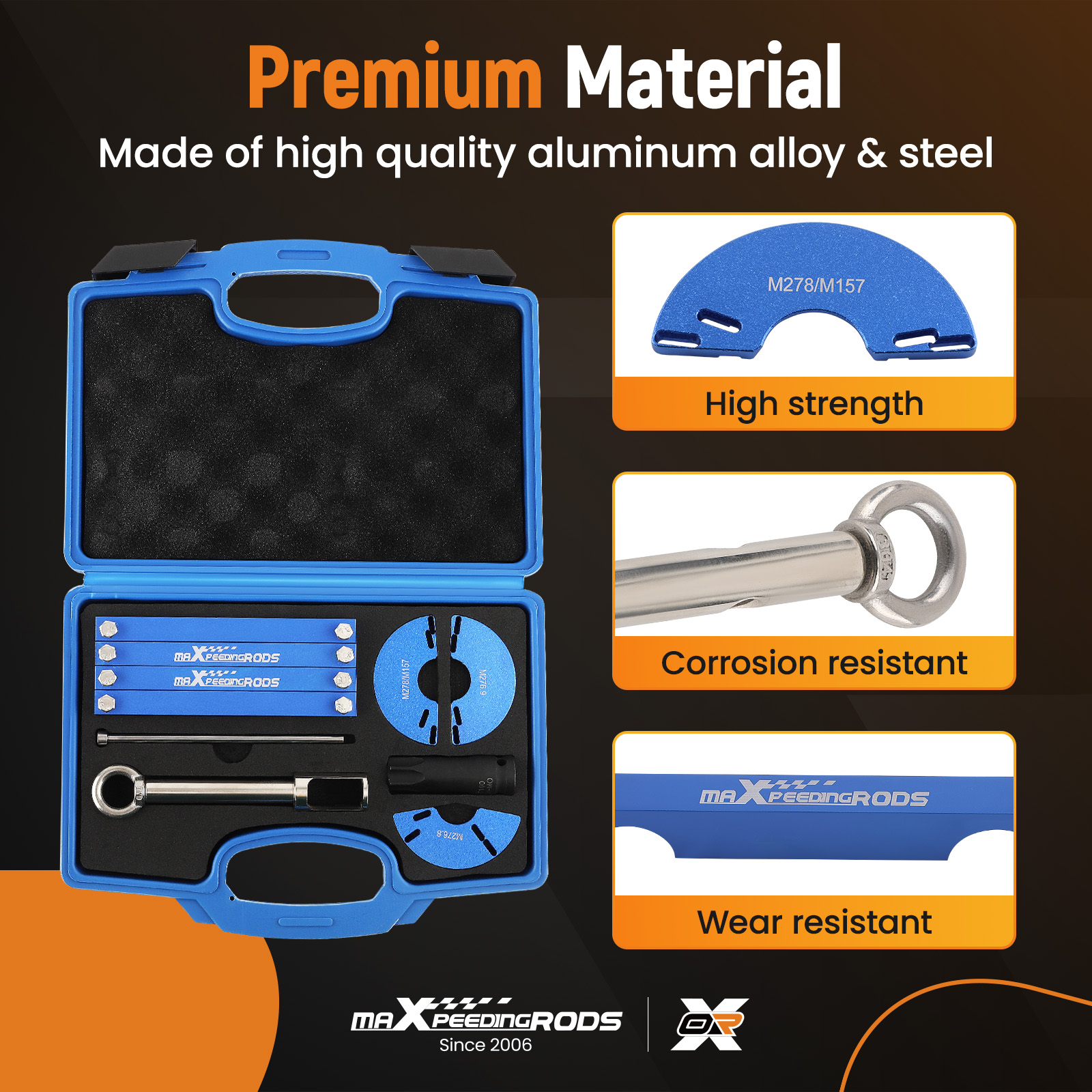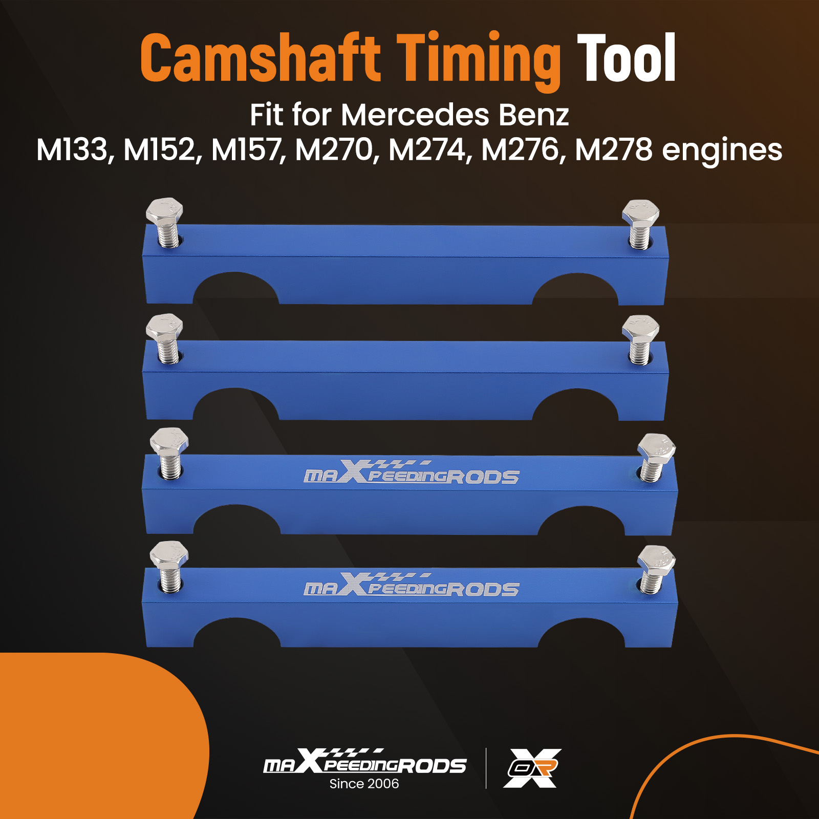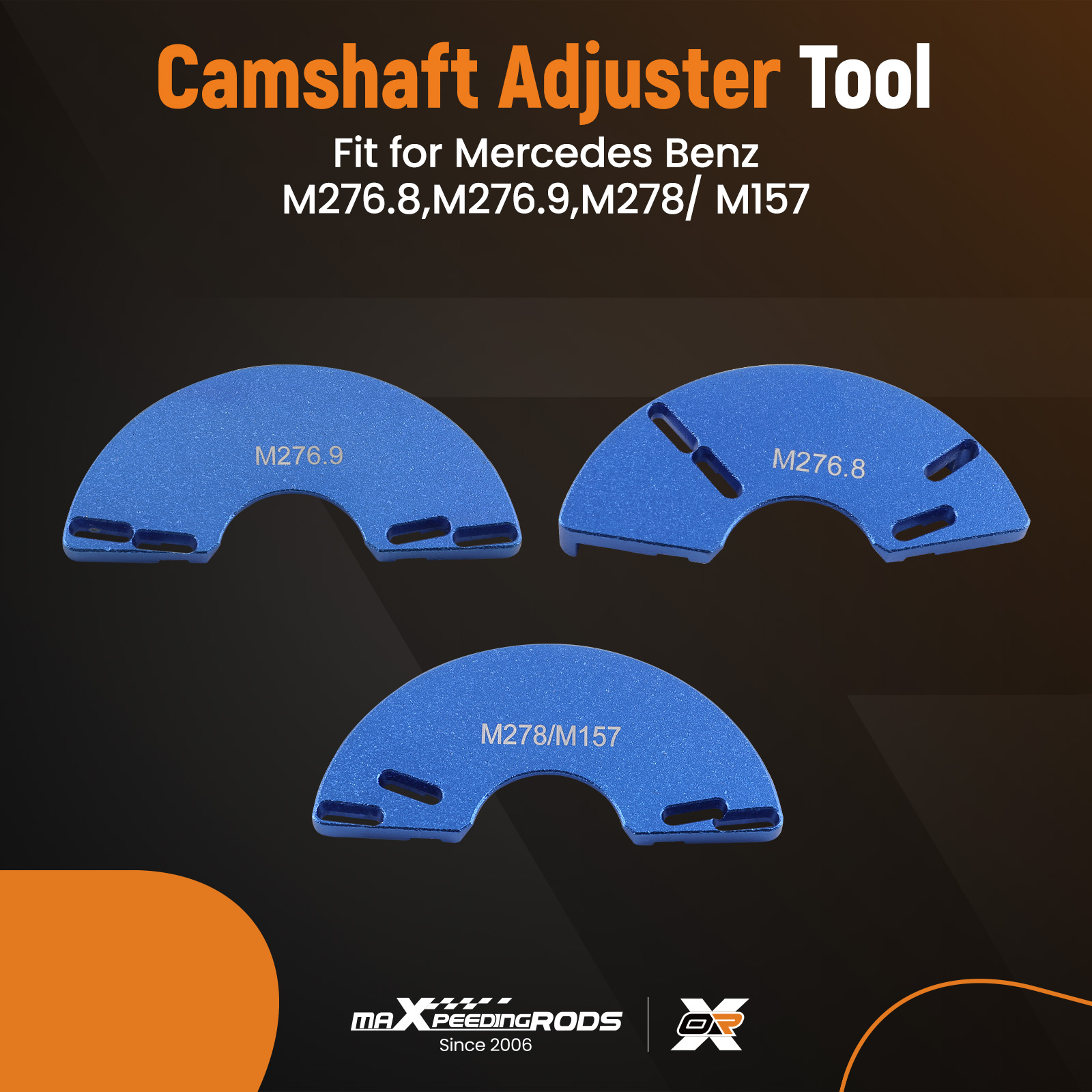 The camshaft alignment timing tool is For BENZ M157 M276 M278 engines Additionally, it comes with an injector remover For BENZ M133 M152 M157 M270 M274 M276 M278.