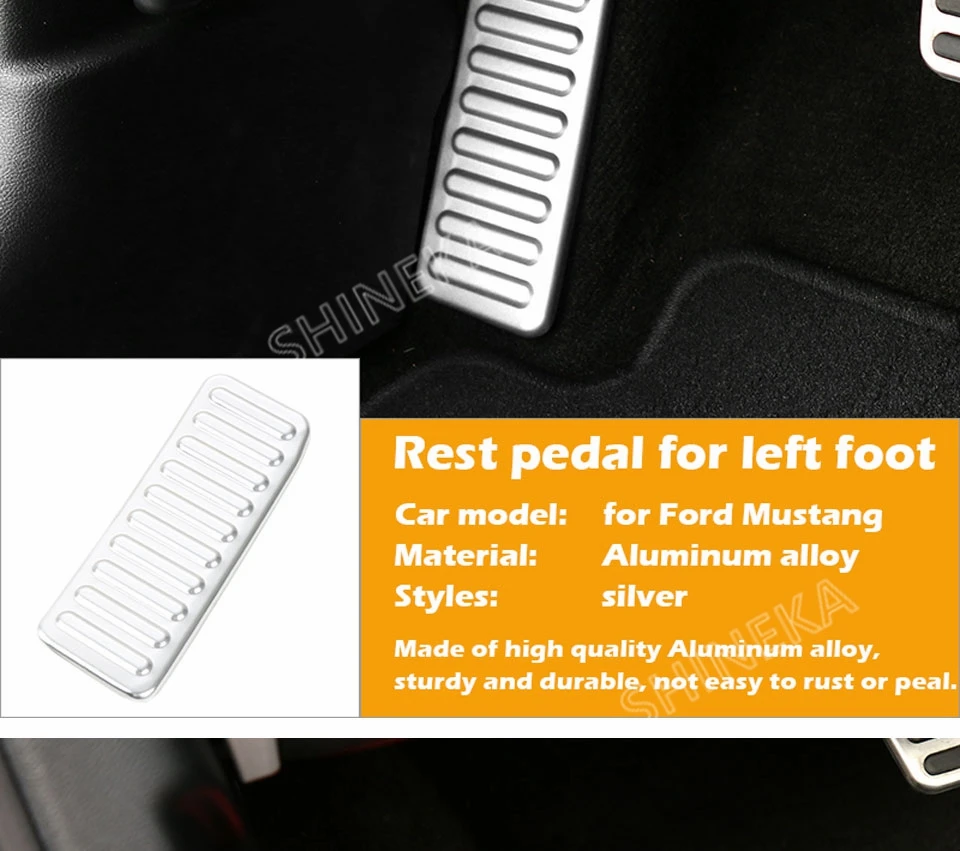 SHINEKA Car Styling Aluminum Alloy Car Left Foot Step Pedal Foot Rest Pedal Cover Anti Slip for Ford Mustang 2015+