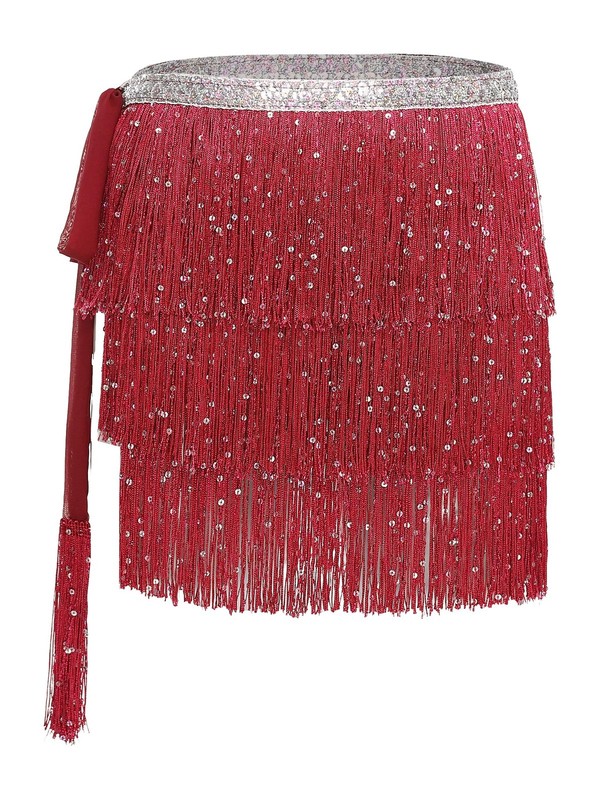 Womens Costume Dancewear Hip Scarf Tassel Skirt Lace-up Chain Miniskirt Belly