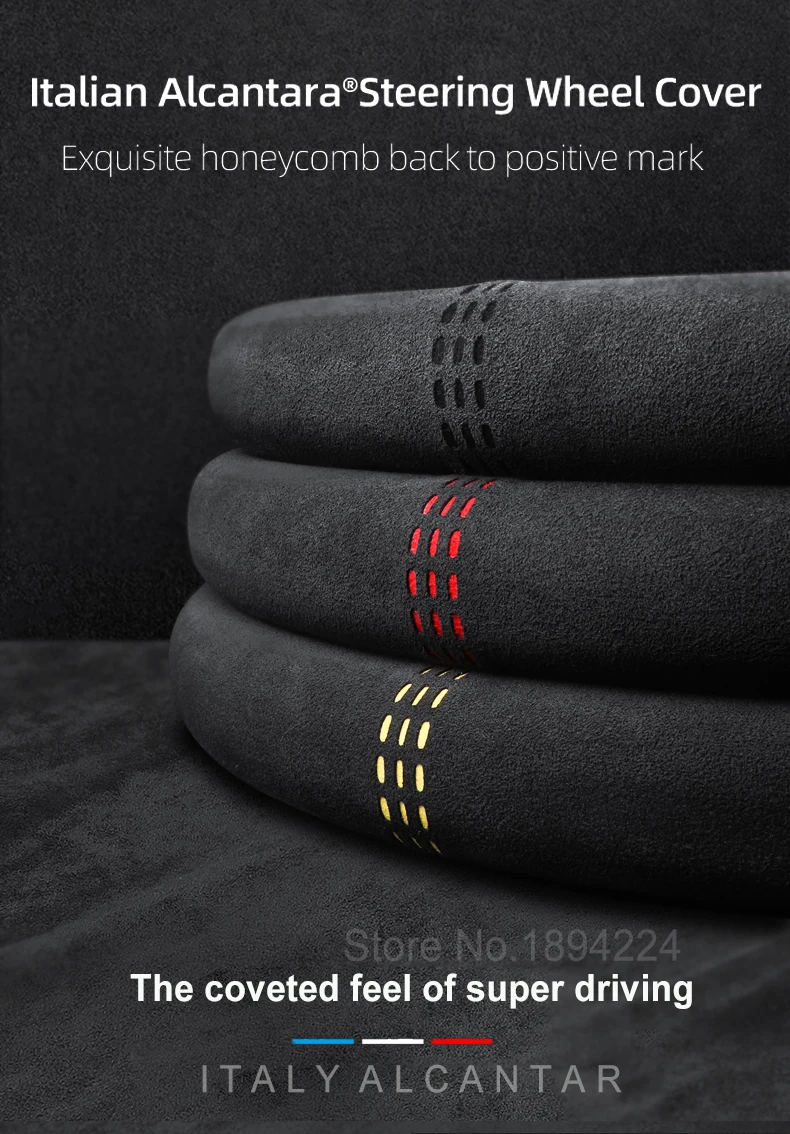 High Quality 38cm 15" Black Alcantara Car Steering Wheel Cover Interior Protection Case All seasons anti-skid steering wheel