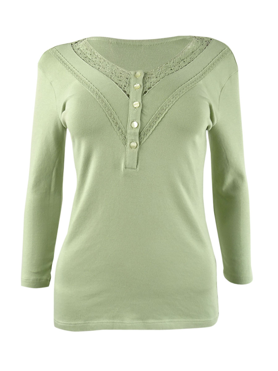 Lauren Ralph Lauren Women's Lace-Trim Henley Top (S, Ranch Sage)