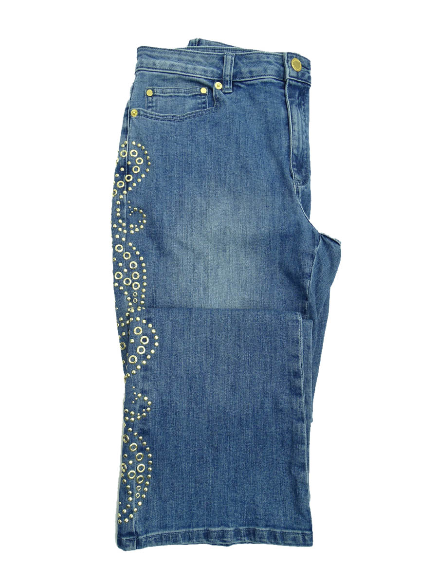 MICHAEL Michael Kors Women's Side-Studded Boot-cut Jeans (8, Blue)