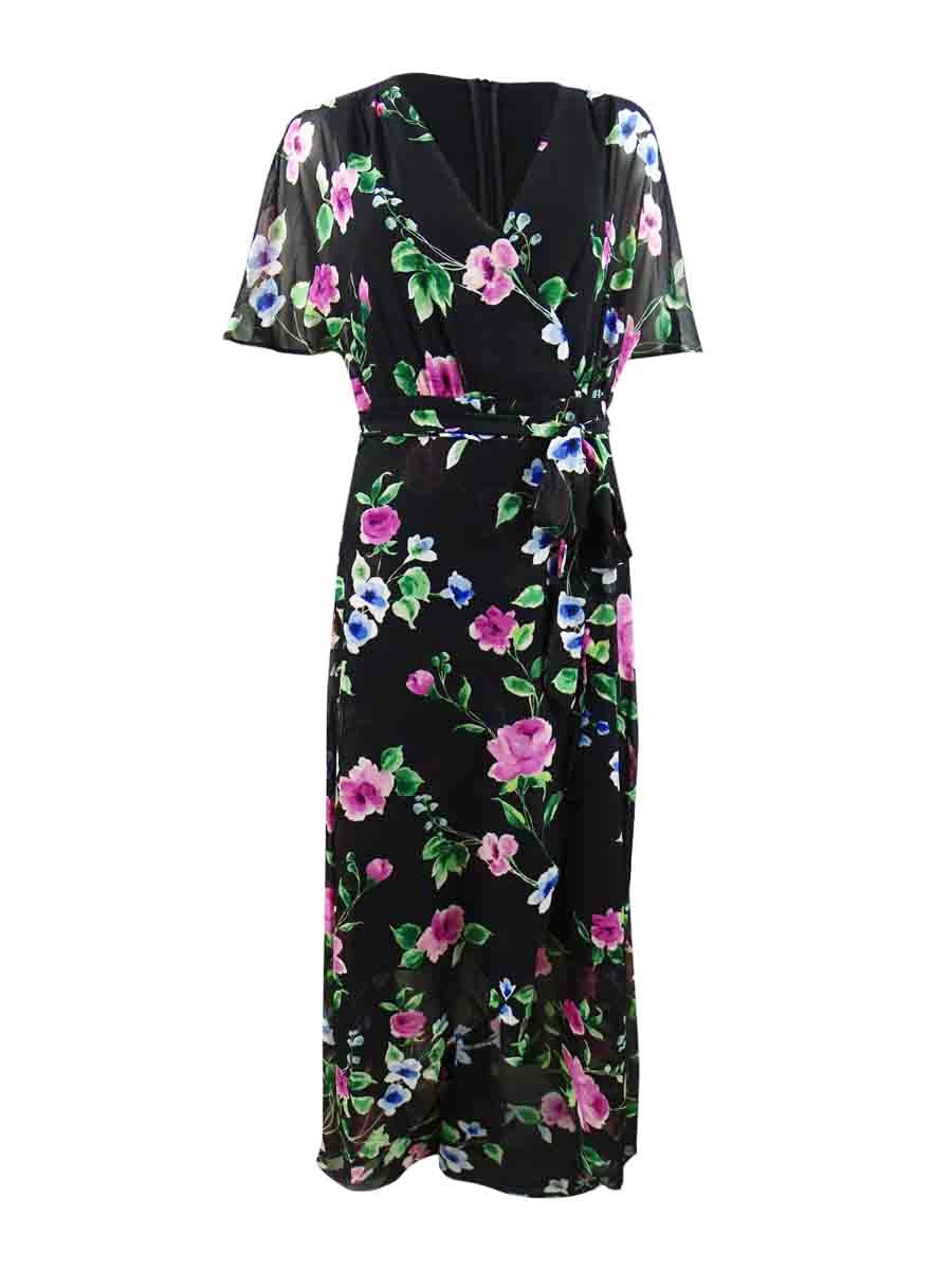 Jessica Howard Women's Floral-Print Faux-Wrap Maxi Dress (6, Black Multi)