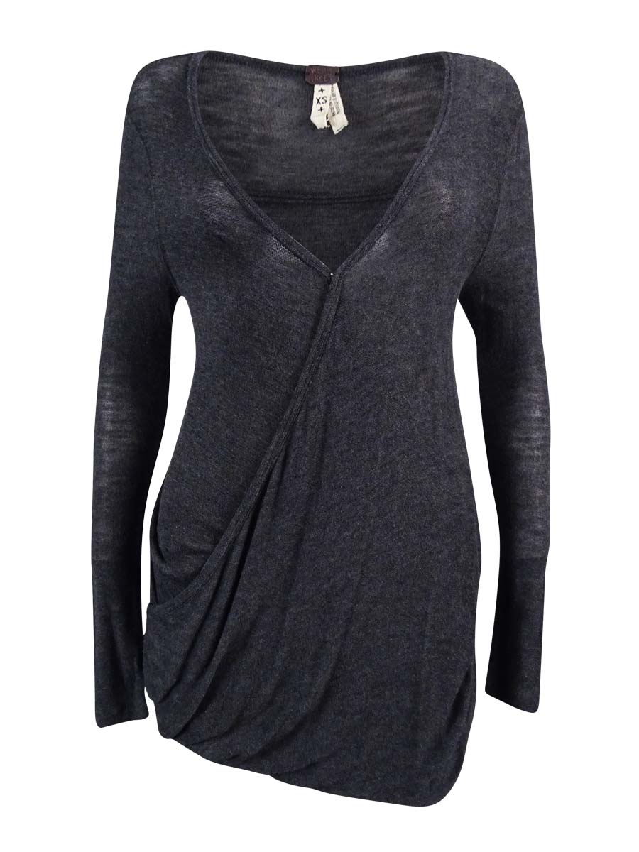 Free People Women's Surplice Long Sleeve Top (XS, Dark Grey Heather)