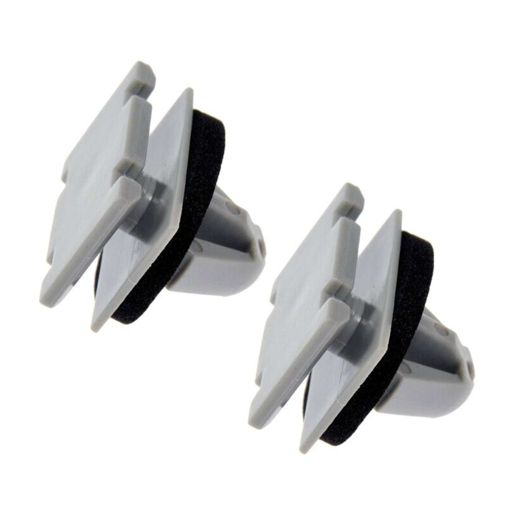 | Detail Product Information | Product Info: - Part: Molding Retainers - Material: Plastic - Color: Gray - Packaging Type: Clamshell - Selling Package Quantity UOM: Piece - Universal Or Specific Fit: Specific - Center Groove Diameter: 0.31 inches - Head Diameter: 0.79 inches - Outside Diameter: 0.6 inches - Shaft Diameter: 0.48 inches - Package Contents: 2 Clips - Package Quantity: 2