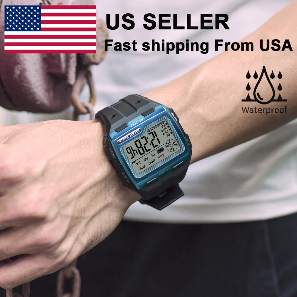 Mens Digital Watch: Dual time zone, 12/24 hour switch, LED display, alarm, stopwatch, automatic calendar, backlight, shockproof. The men's multifunction watch is perfect for all kinds of sports and everyday use, perfect for outdoor and indoor activities, such as running, climbing, fishing, ect.