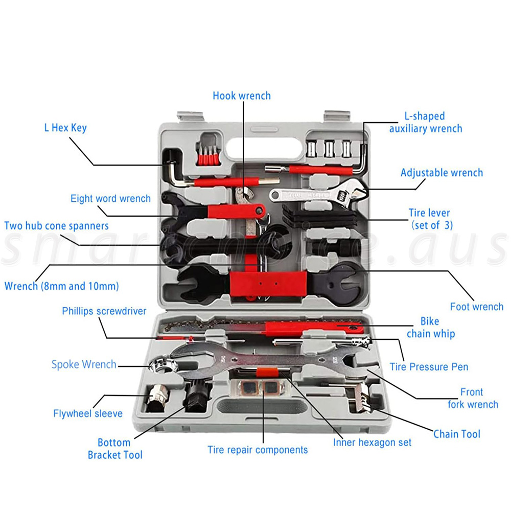 44Pcs Bike Cycling Bicycle Maintenance Repair Tools Kit Wrench Chain Whip Set AU