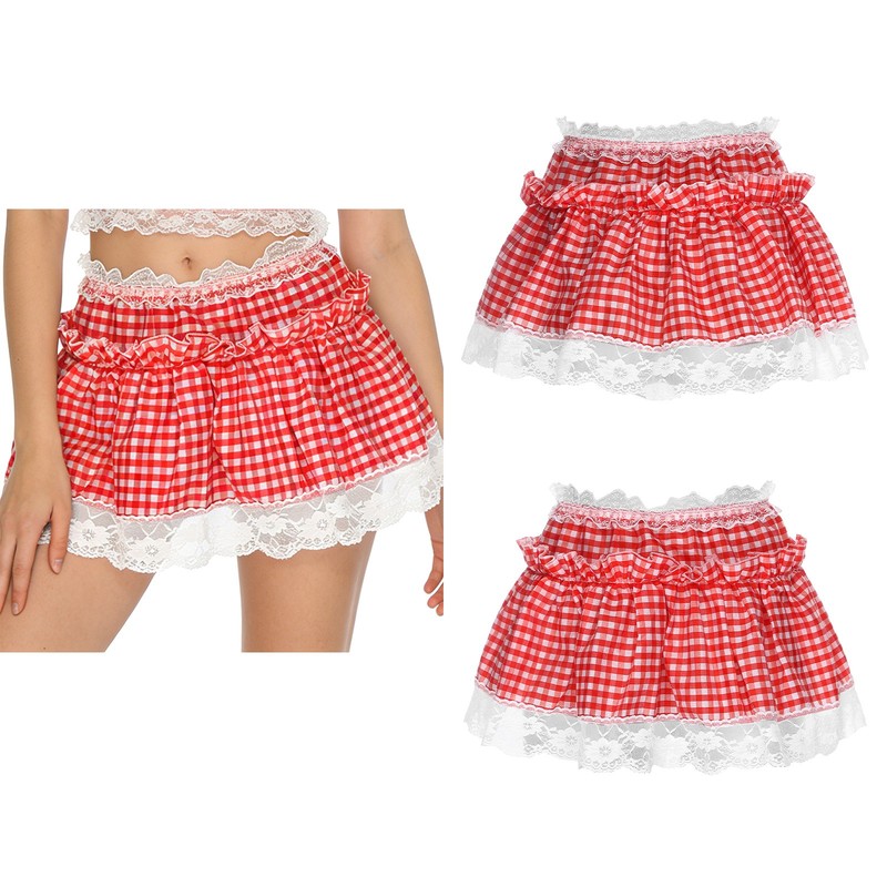 Women Dancewear Ruffled Skirt Elastic Miniskirt Party Lace Rave Plaid Hem Club
