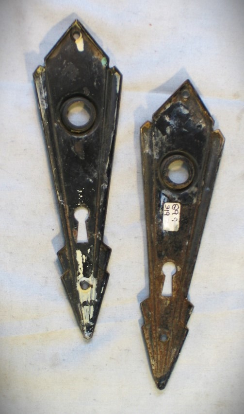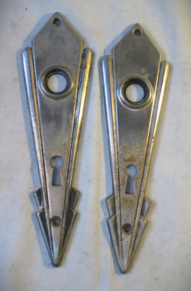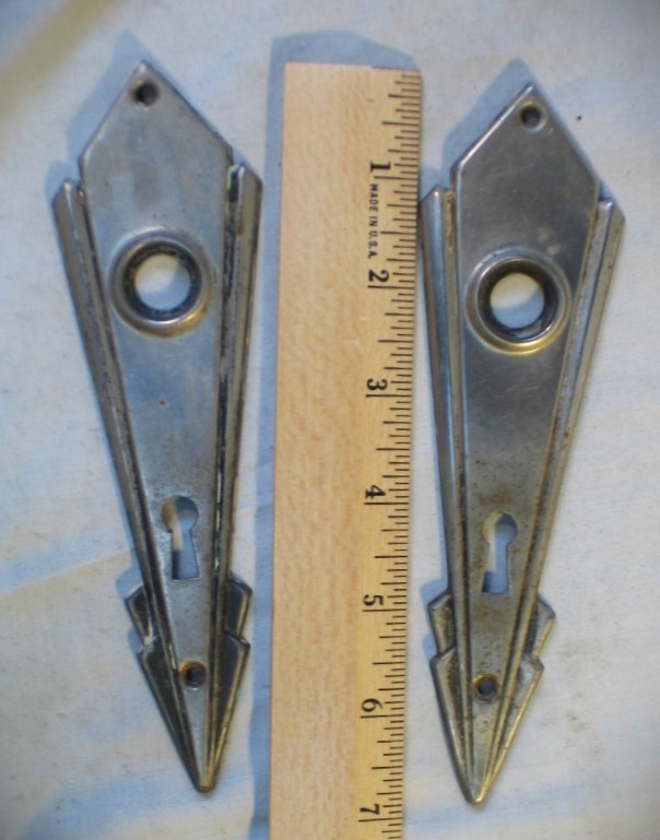 Pair of Vintage Art Deco Door Knob Escutcheon.. Vintage Art Deco Style Door Parts Hardware... Very good condition, please see photos for details... Measures about 7 inches tall...