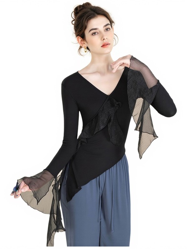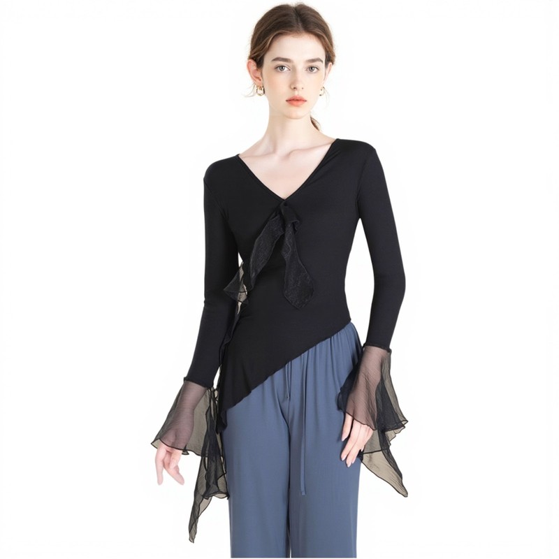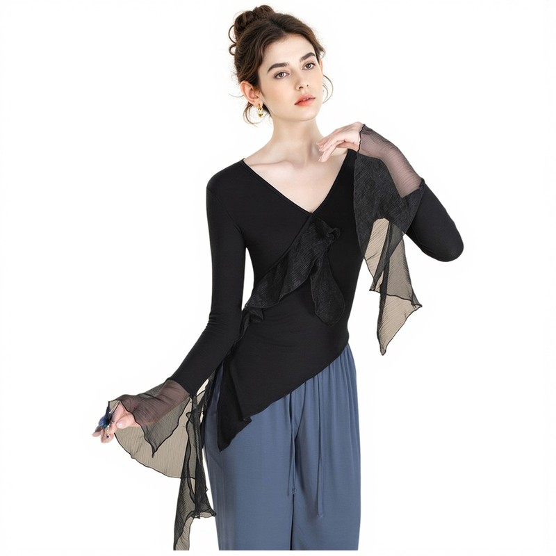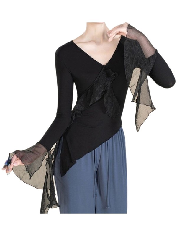 Womens T-shirt Stage Top Shirts Blouse Modern Ruffled Ballet Yoga Hem Workout