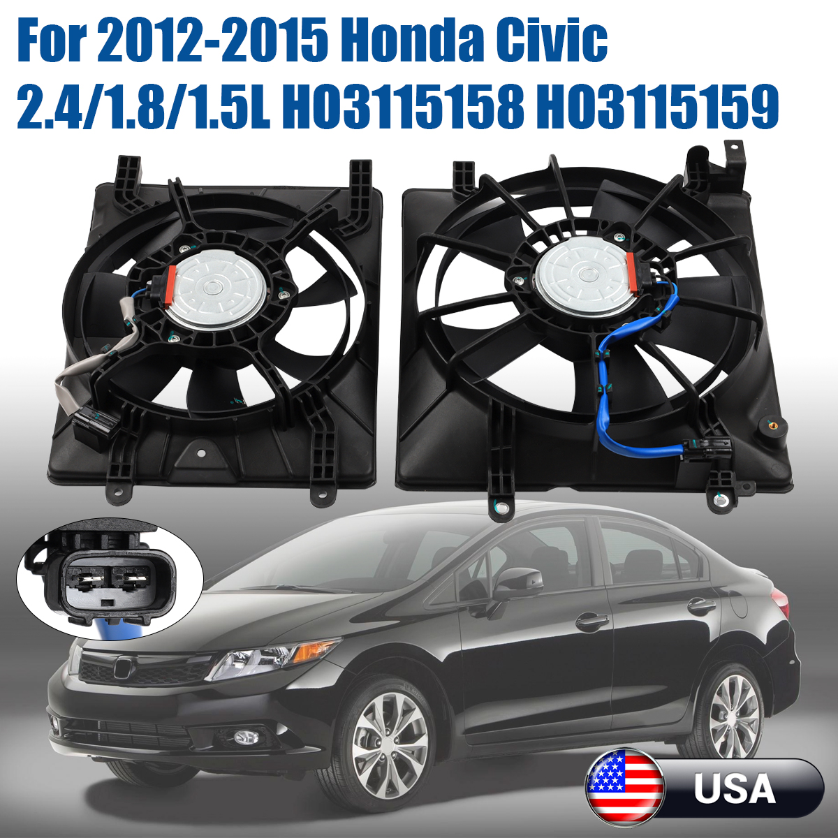 2PC Engine Radiator Cooling Fan Assembly for Honda Civic (2012–2015) & Acura ILX (2013–2015)
