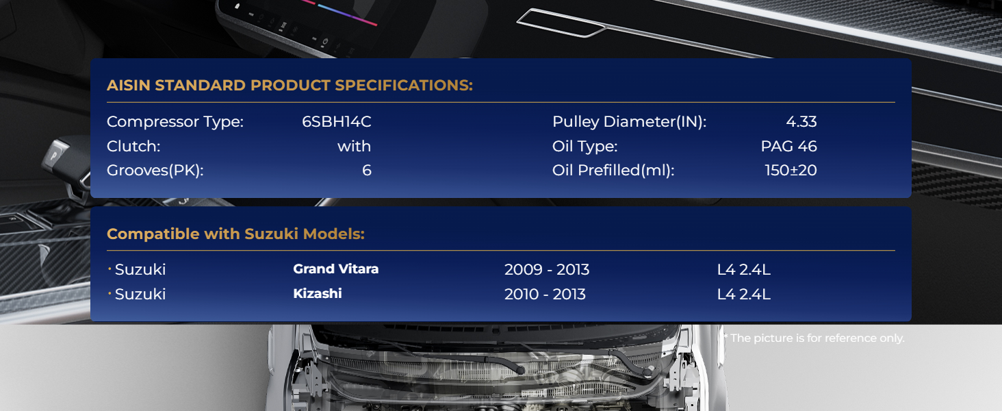 AISIN AC Compressor w/ Clutch for Suzuki Kizashi Grand Vitara 2009-2013 L4 2.4L