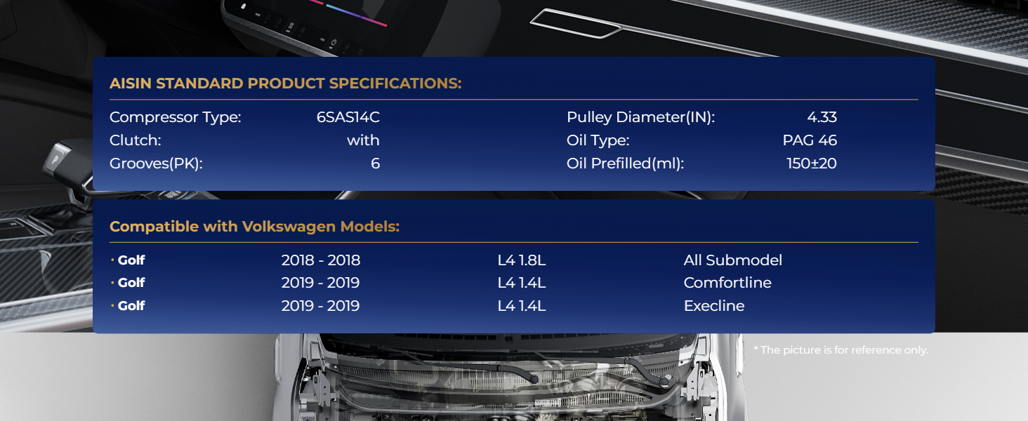AISIN AC Compressor with Clutch for Volkswagen Jetta Golf Tiguan GTI 2018-2023