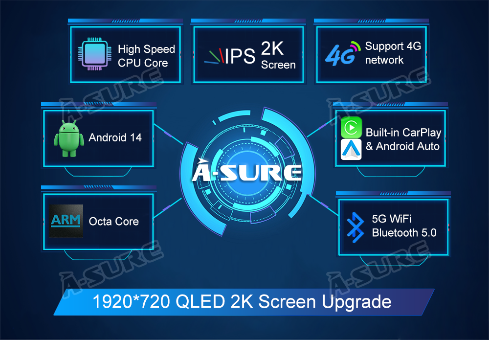 Experience the future of driving with our 12.3-inch 2K Android 14 Car Radio. Powered by the latest Android 14 system and an 8-core processor, it brings convenience and fun to every journey. The stunning 1920x720 IPS touchscreen delivers crystal-clear visuals, while 4GB RAM and 64GB ROMprovide ample storage for all your needs.