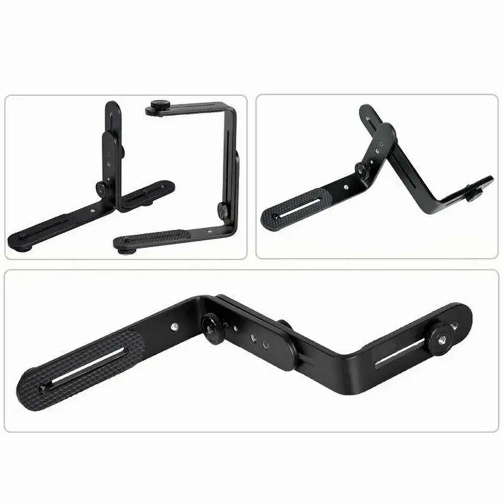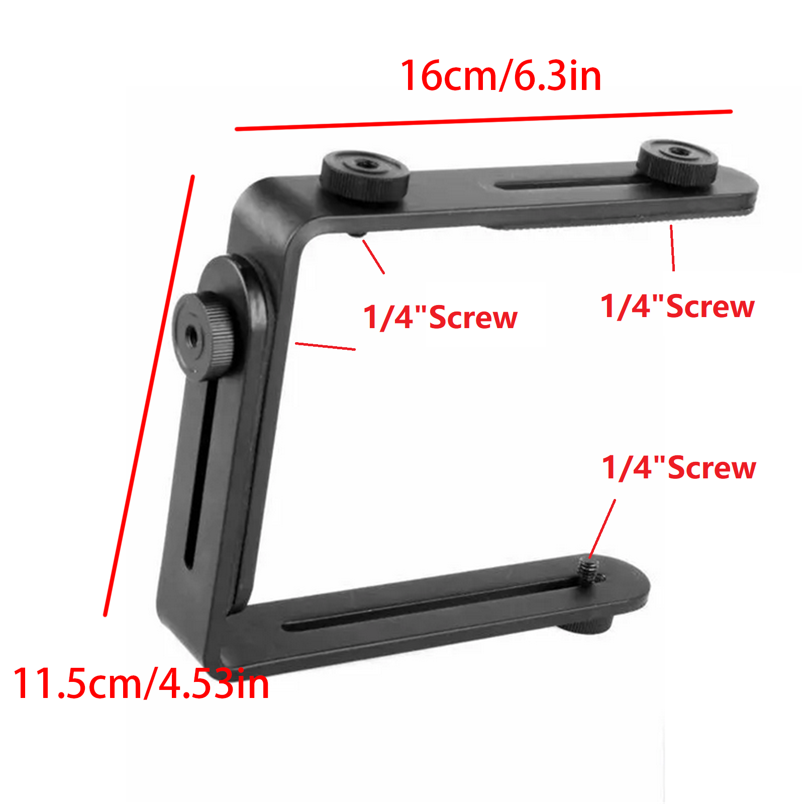 3. L-shape brackets are all equipped with non-slip pad, 1/4" hand screws all have 1/4" screw hole at the bottom, support extensions.