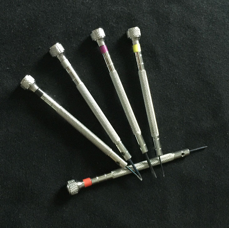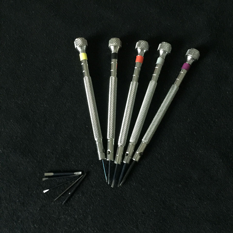 Economy 5-piece screwdriver set for watch repair and eye glass repair of all kinds;