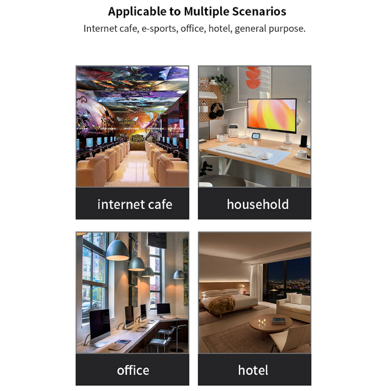 3. Small and portable design: suitable for home, office, hotel, Internet bar, etc. There is a sturdy double-sided tape on the bottom that ensures it can be attached to the table.