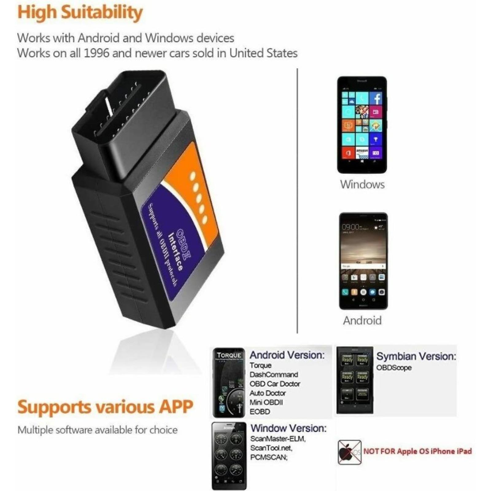 for Android : Torque, DashCommand, OBD Car Doctor, Auto Doctor, Mini OBD, EOBD, etc.