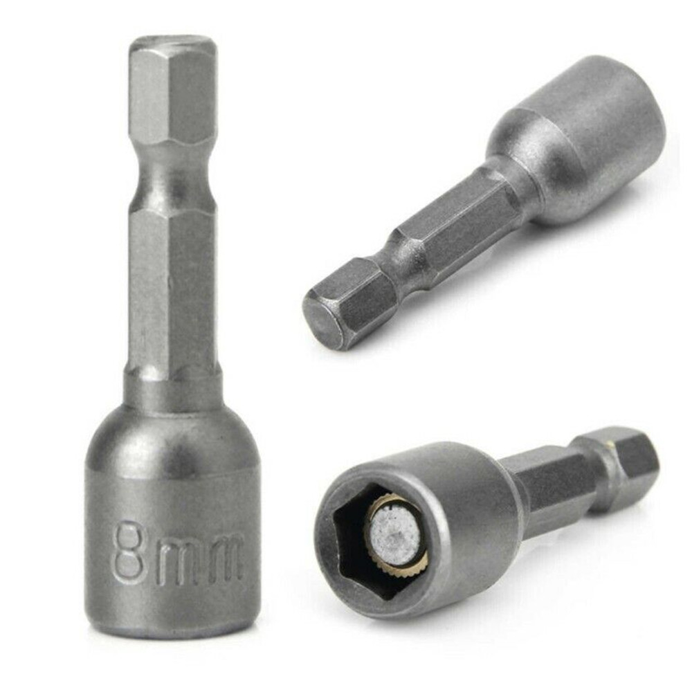 Magnetic nut setter can be used with an impact/bit driver or hex socket ratchet to securely grab nuts and fasteners for easy installation or loosening/removal.