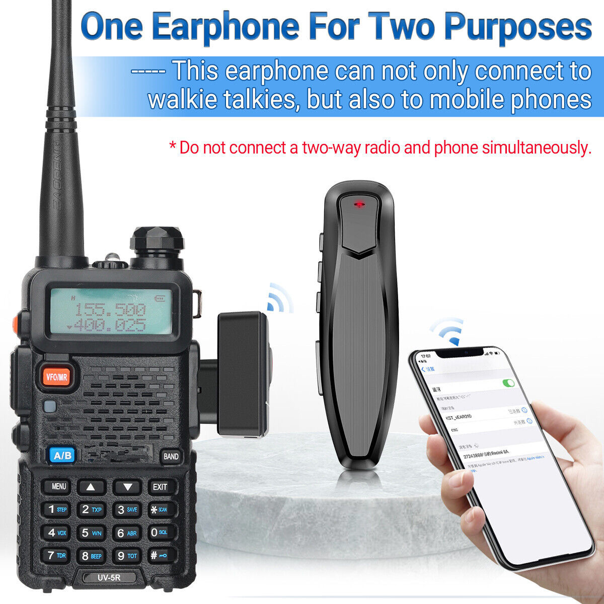 This earphone adopts bluetooth connection technology, which is more convenient than traditional wired connections. Bluetooth earphones designed specifically for two way radio enthusiasts, freeing up hands and meeting various needs.