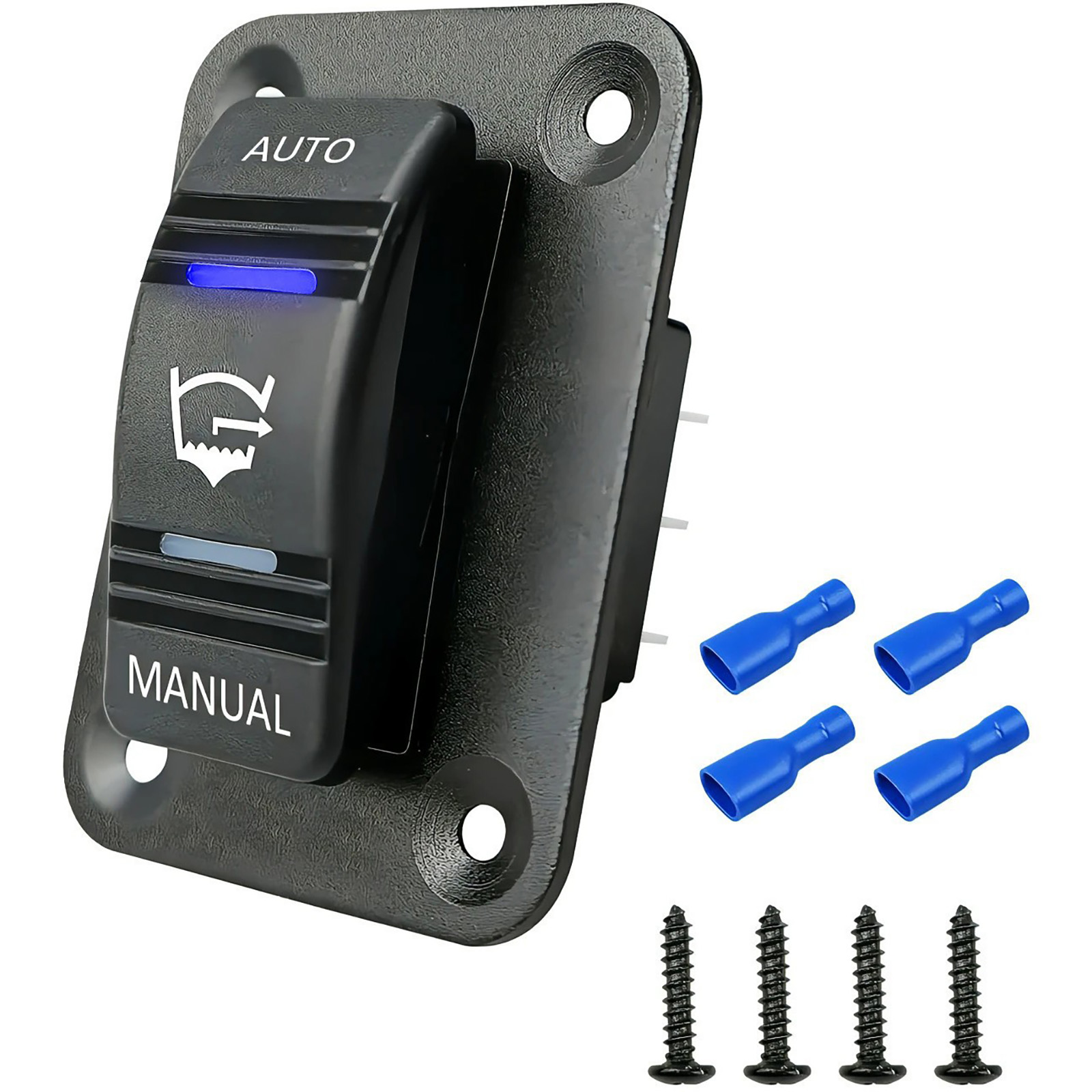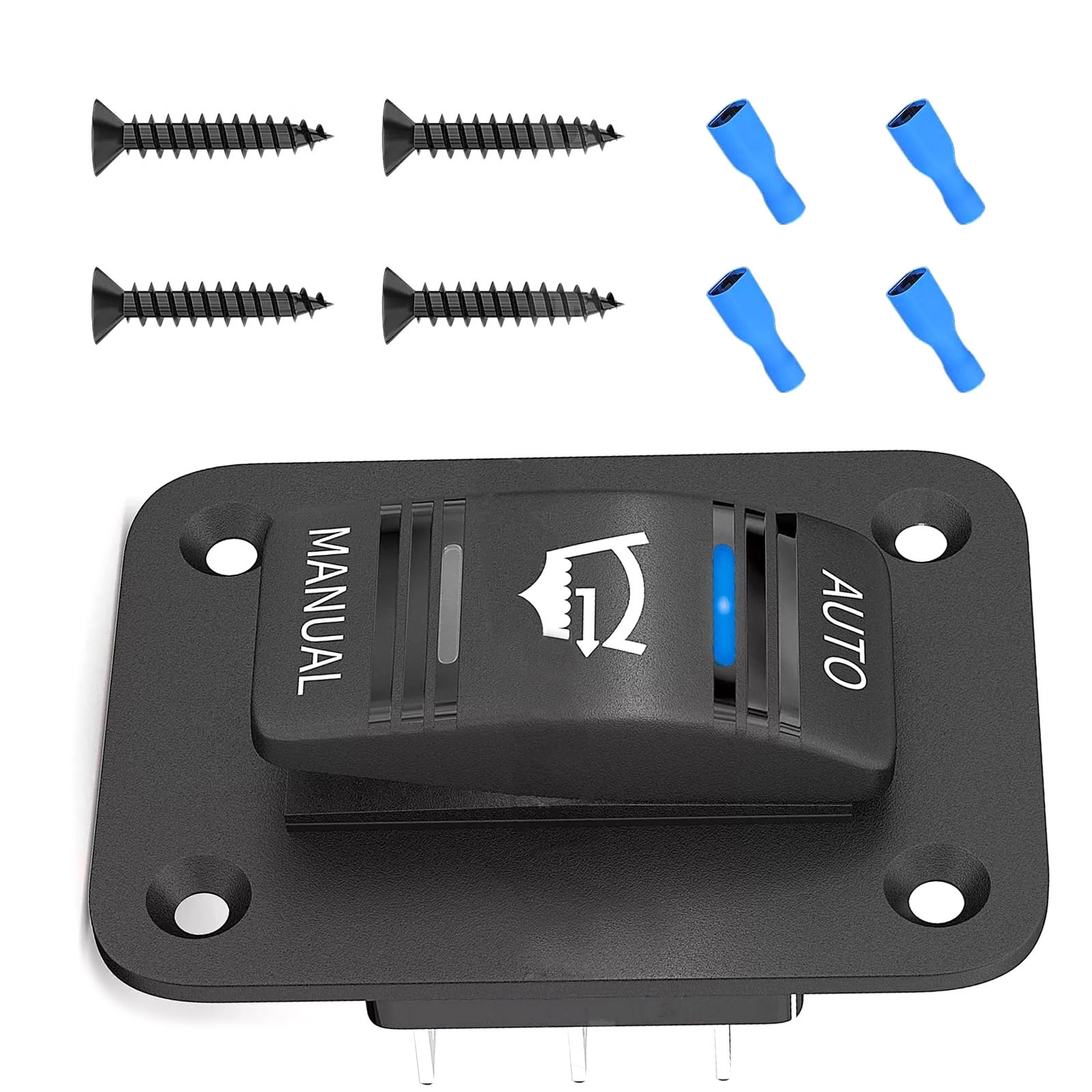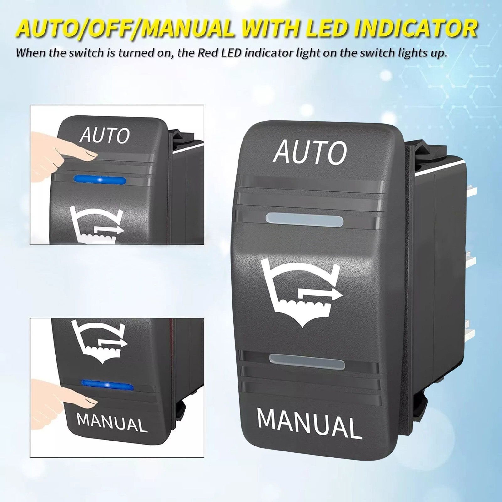 This bilge pump switch has auto/off/manual 3-way 3-position and 1 SPDT design. It comes with a blue led light indicator and a waterproof plate, which is more convenient for you to use at night.