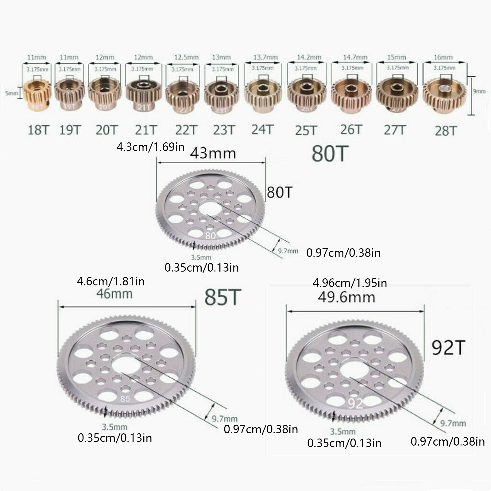 18T 19T 20T 21T 22T 23T 24T 25T 26T 27T 28T 92T 85T 80T motor gear.