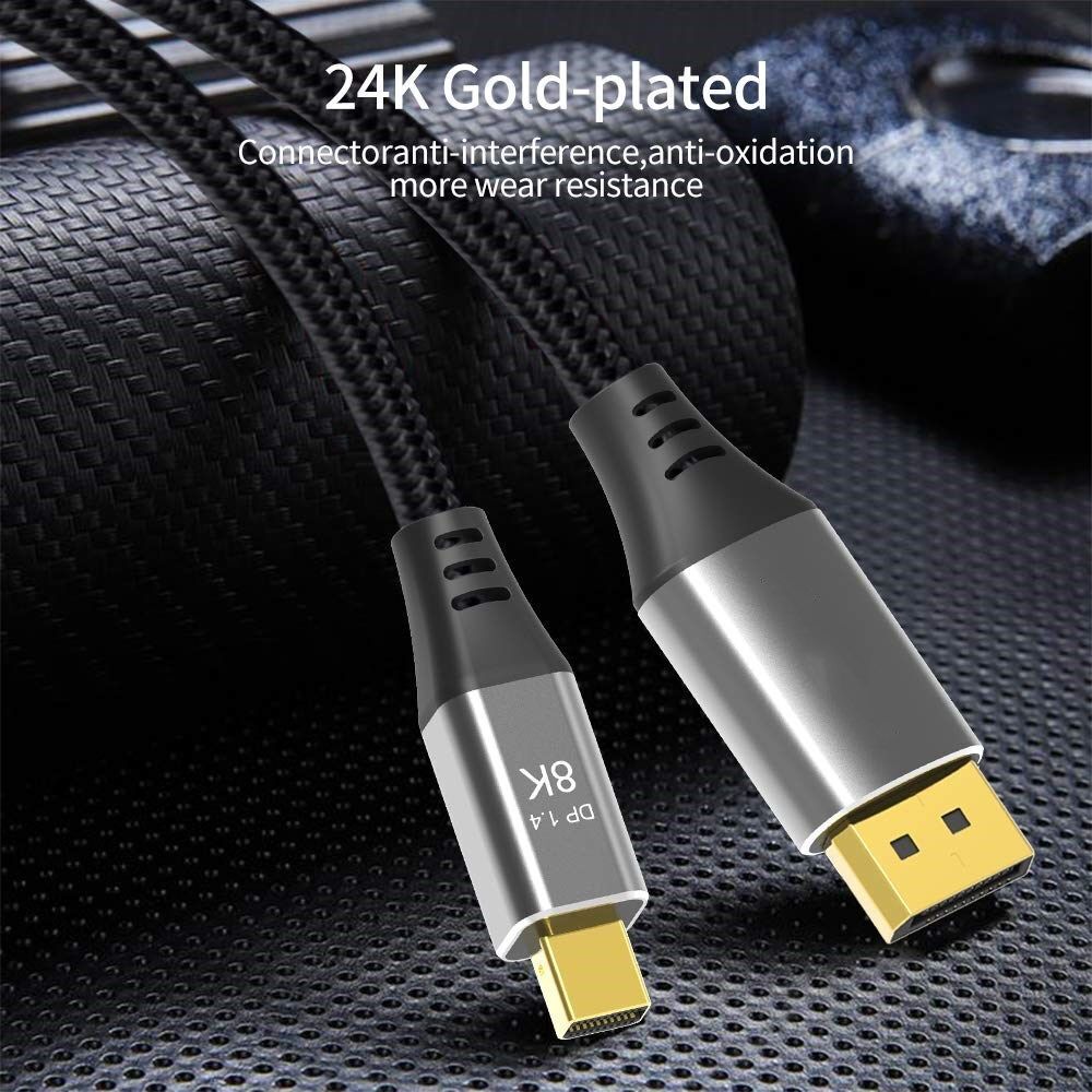 DisplayPort 1.4, Ultra HD 8K Video, Games and Picture Experiences, the Mini DisplayPort to DisplayPort Cable supports max Resolution up to 8K (7680X4320)@60Hz, 4K (3840x2160)@144Hz, 8K Image Quality, Smooth Immensive Experiences, 3D.