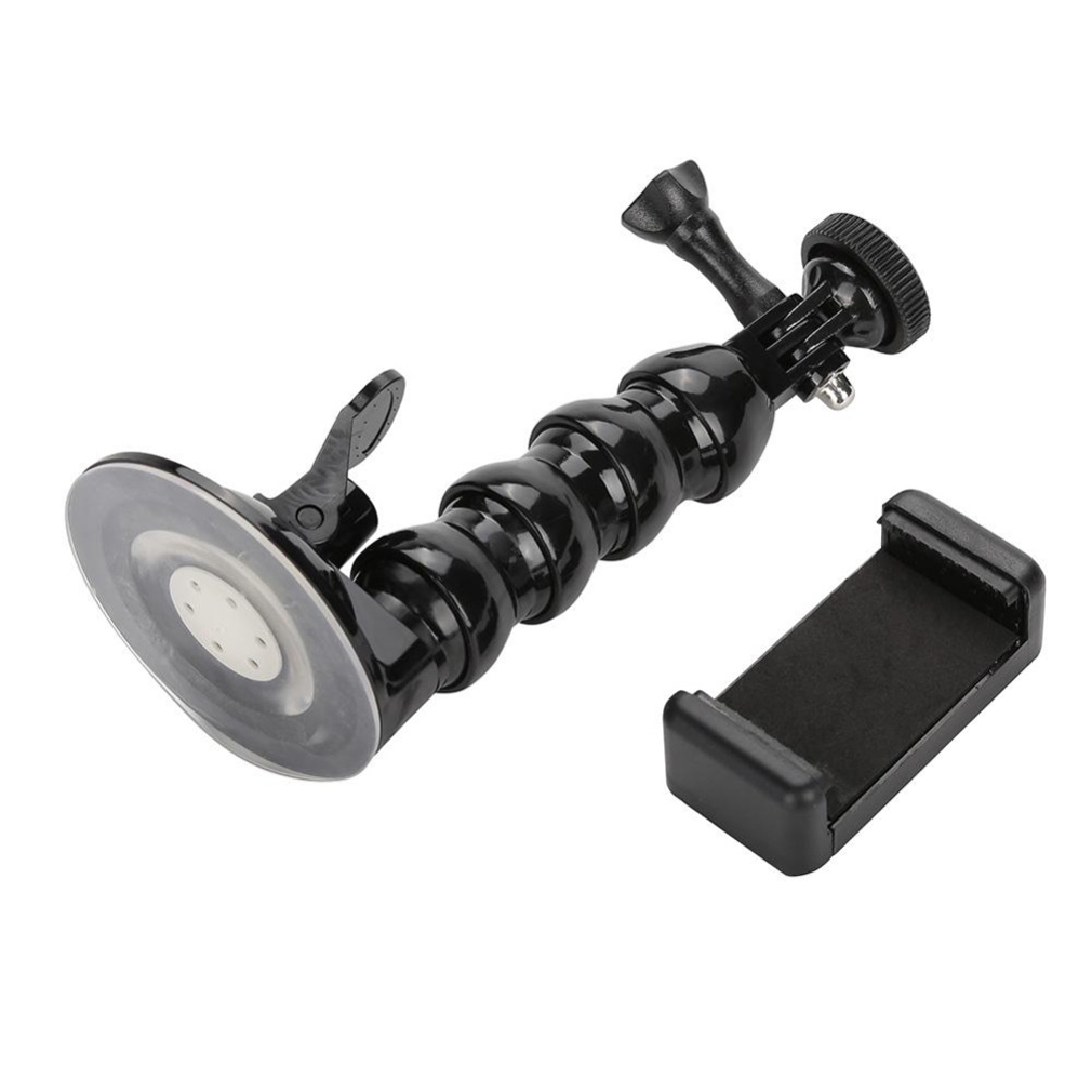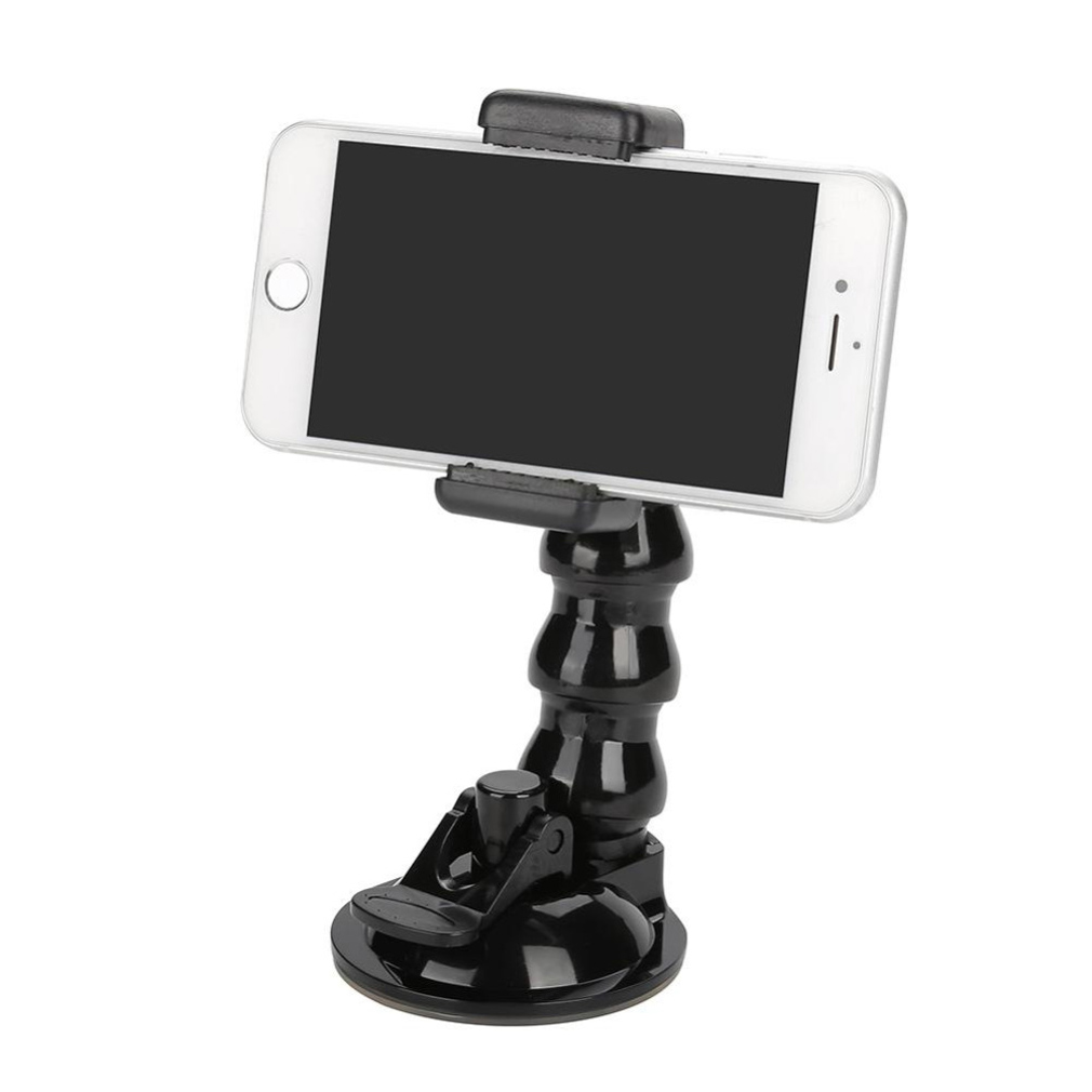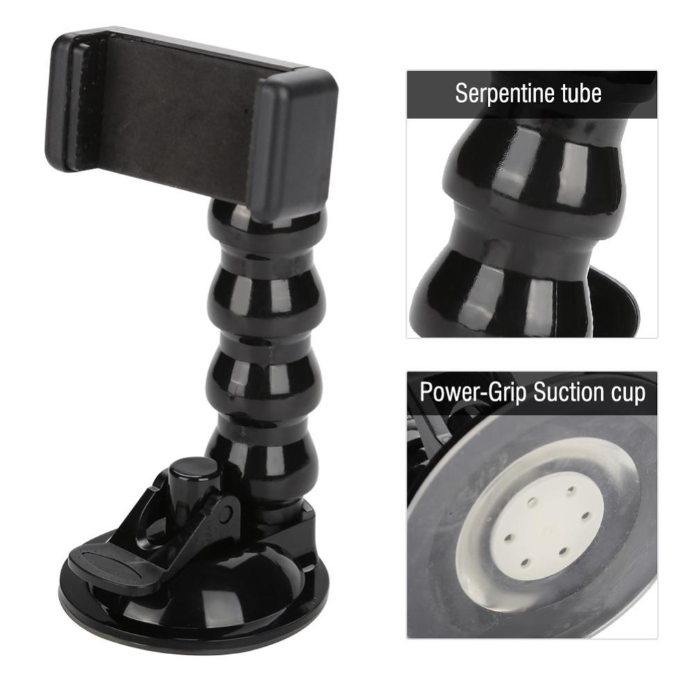 Phone holder can hold mobile phone or sports camera with a width of 55 to 86 mm.