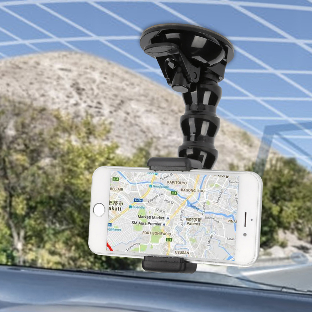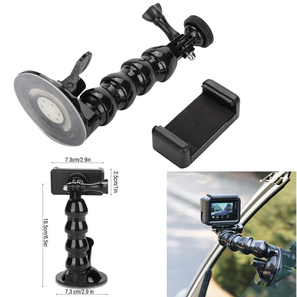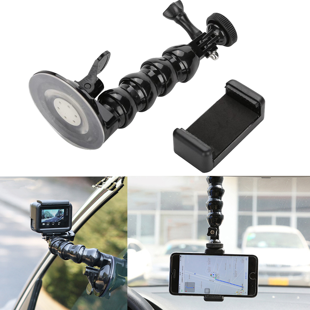 Phone holder can hold mobile phone or sports camera with a width of 55 to 86 mm.