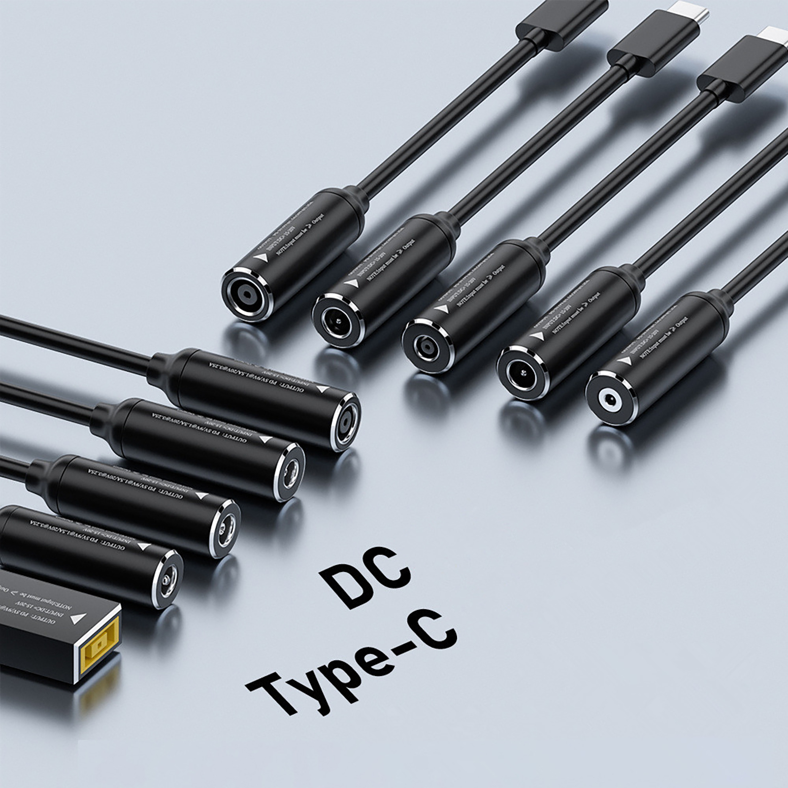 1. Input Ports: The Quick Charging Cable supports input ports (DC or for Lenovo ports) to meet the conversion needs of power sources. The DC power supply is instantly transformed into a Type-C charger PD power supply, and the power level is immediately improved.