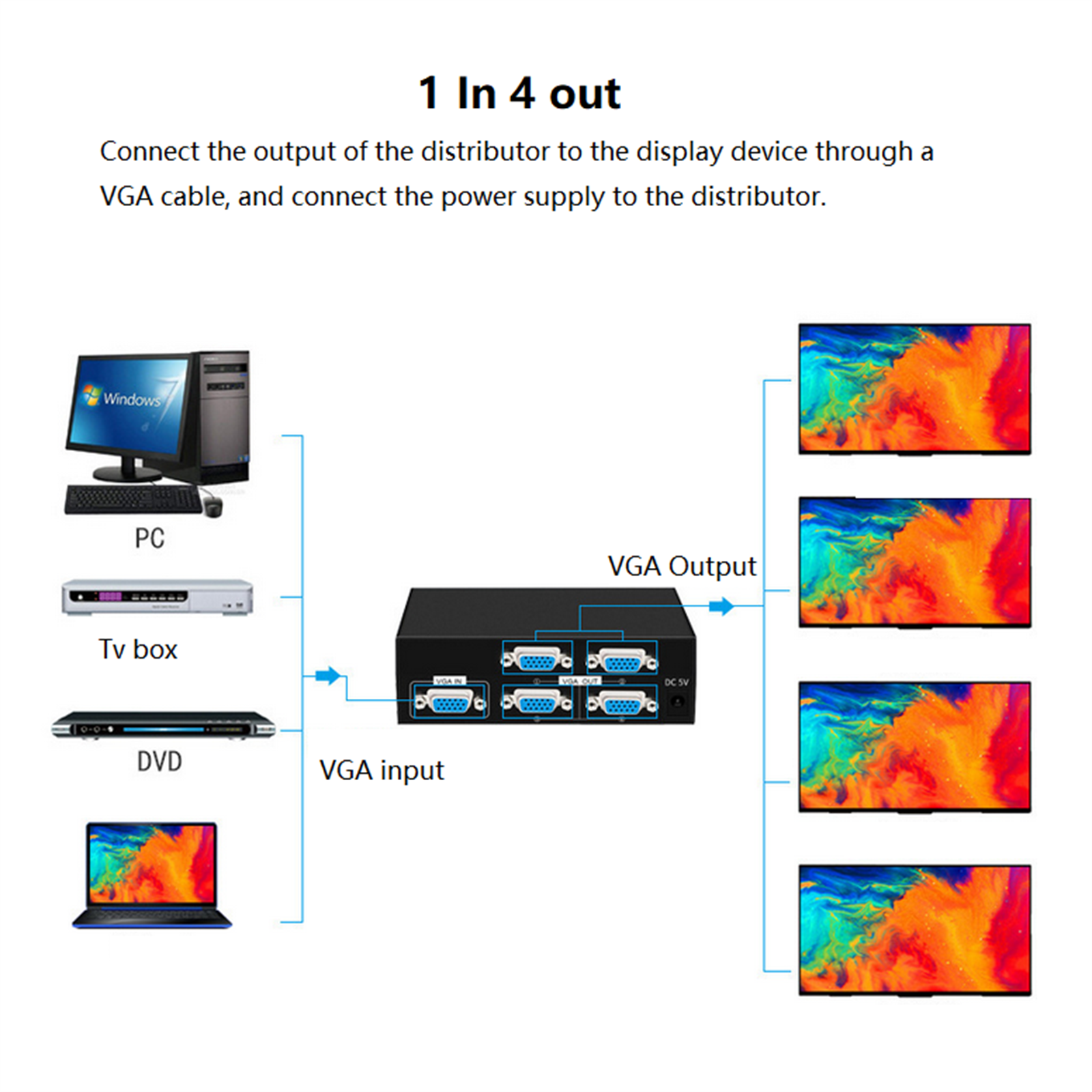 One VGA signal inout, four VGA signal output
