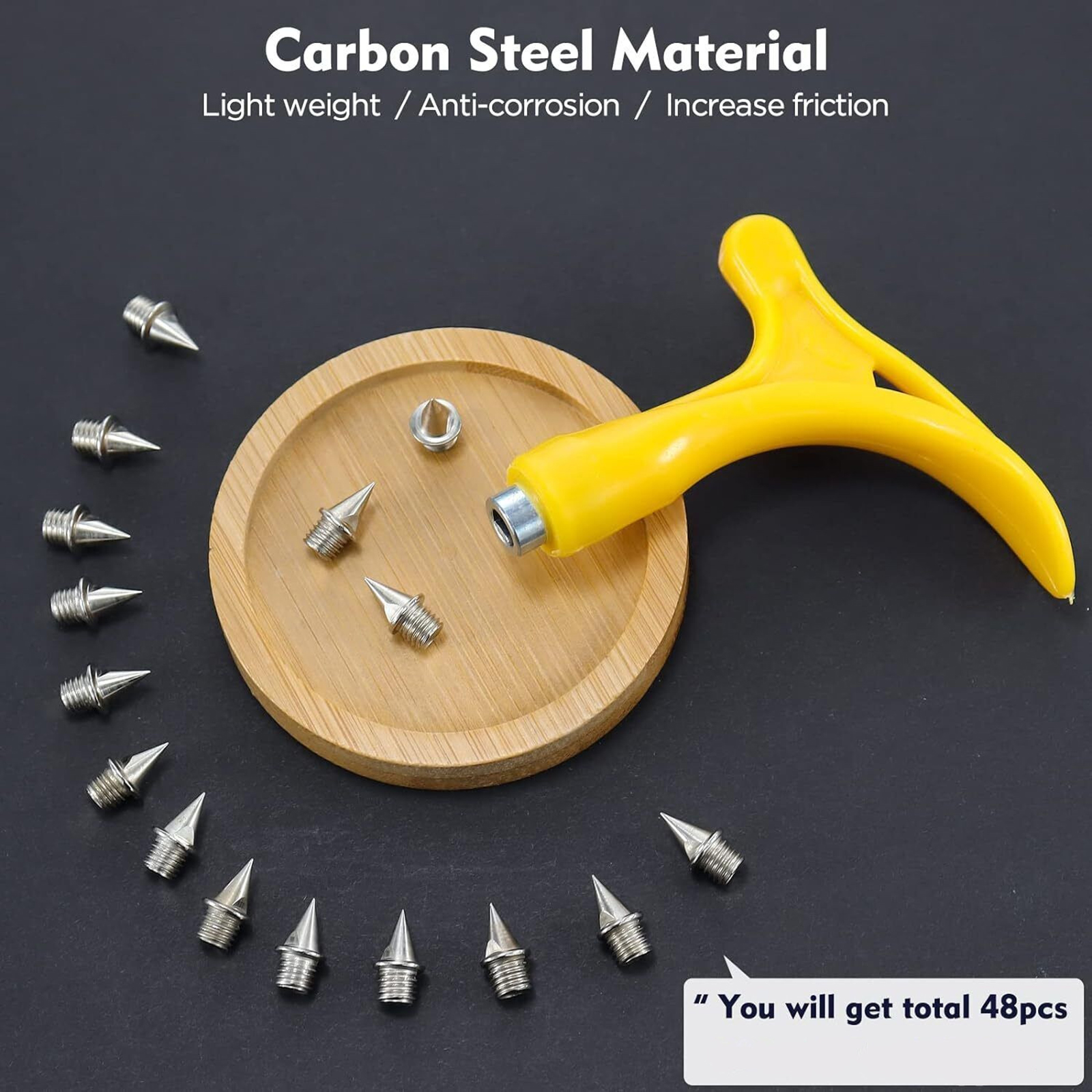 48PCS 7mm track spikes, convenient for you to replace your shoe spikes. A spike wrench is also provided for taking the spikes in and out.