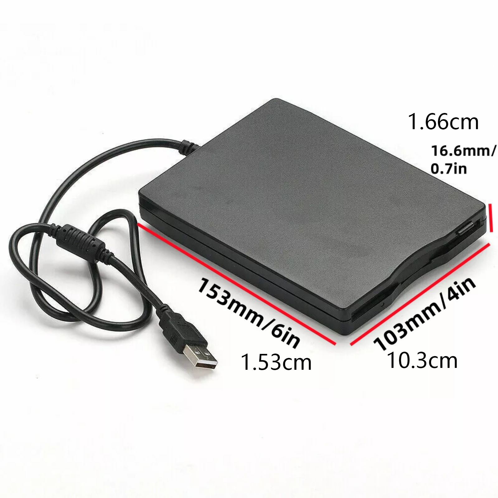 Ultra-thin and portable, elegant design: The floppy drive's housing features a black polished finish, giving it a stylish and elegant appearance. Meanwhile, its small size and lightweight design make it easy to carry, perfect for use in travel situations or environments without power outlets, greatly enhancing mobility and reducing space requirements.