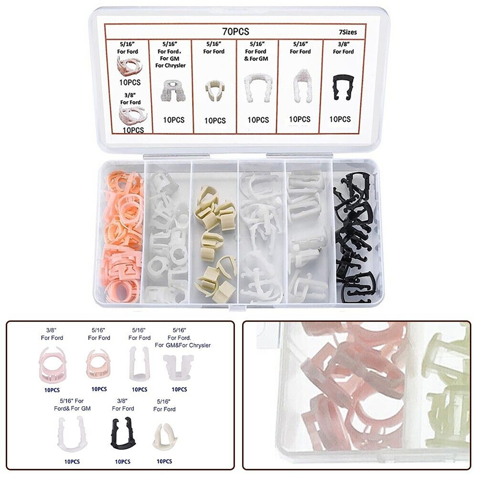 With a total of 70 pieces in 7 sizes, these fuel line retaining clips are suitable for various car models. They guarantee reliable performance and a long service life, making them essential fuel line clip replacement parts.