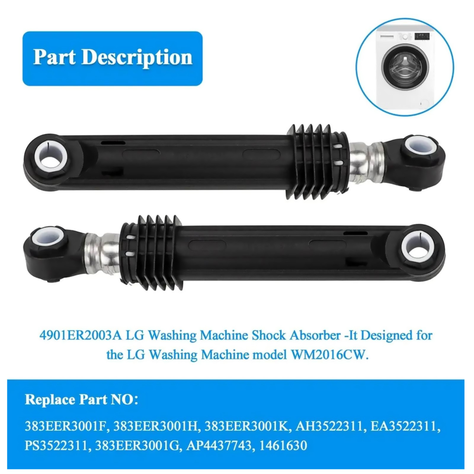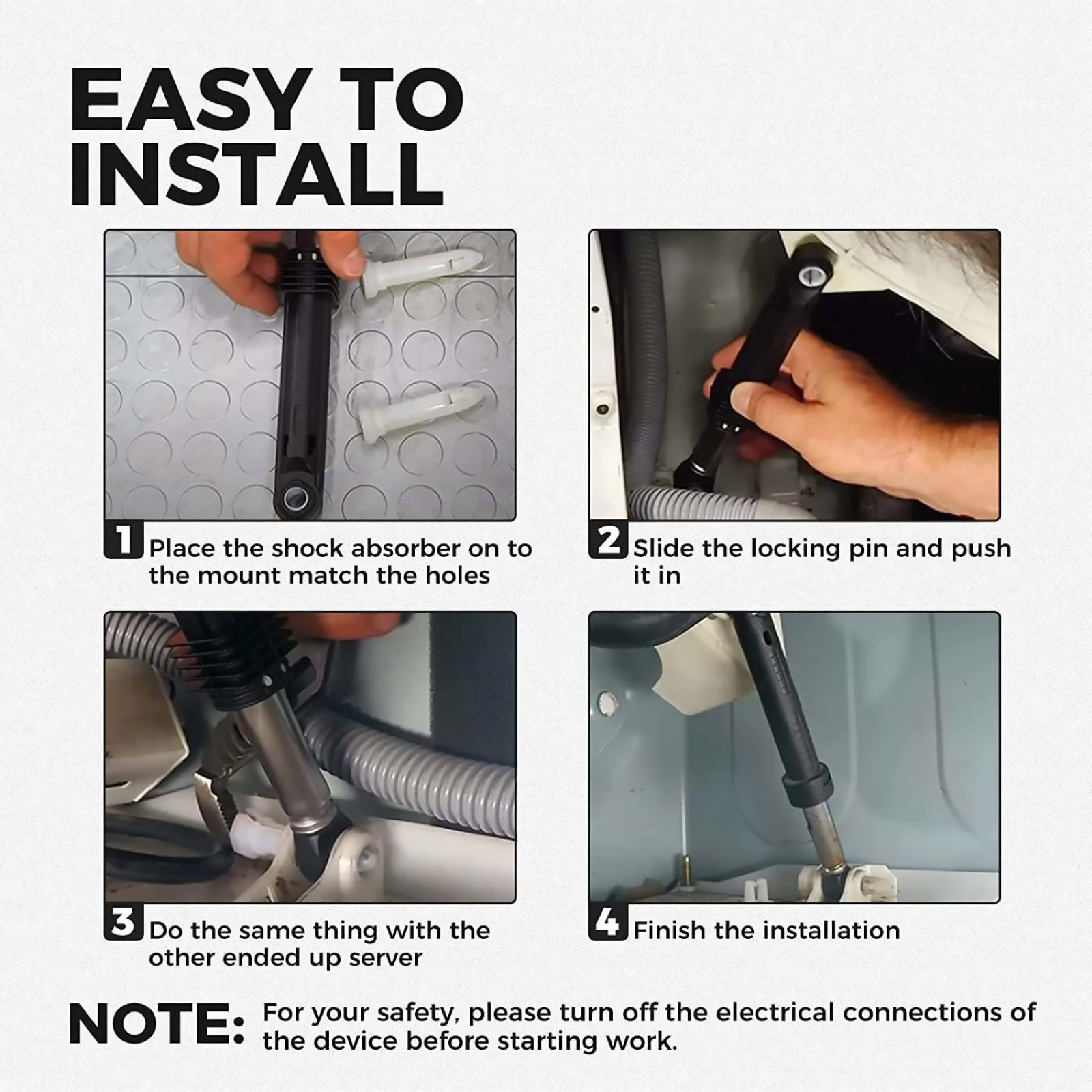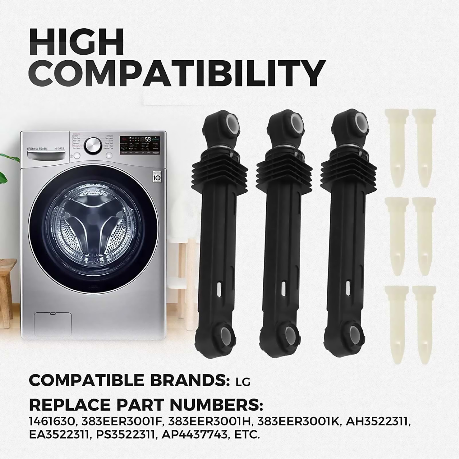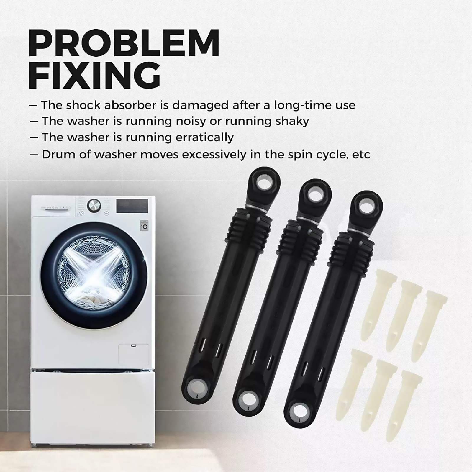 Improved shock absorption: In comparison to aging or damaged shock rods, the new replacement parts excel at absorbing and dispersing vibrations and noise generated during washing machine operation. This safeguards internal components from damage while diminishing laundry-related noise, fostering a quieter, more comfortable living environment.